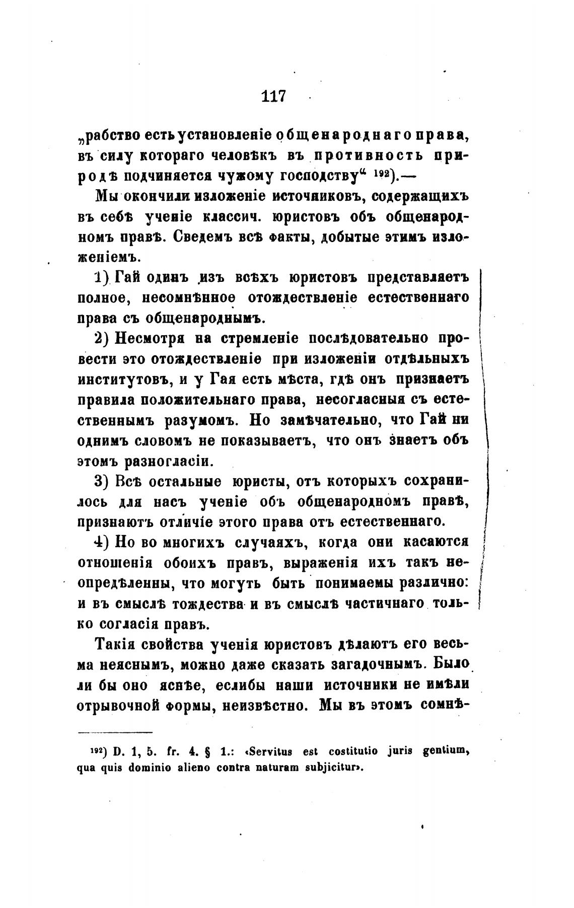 192) D. 1, 5. fr. 4. S 1.: «Servitus est costitutio juris gentium,