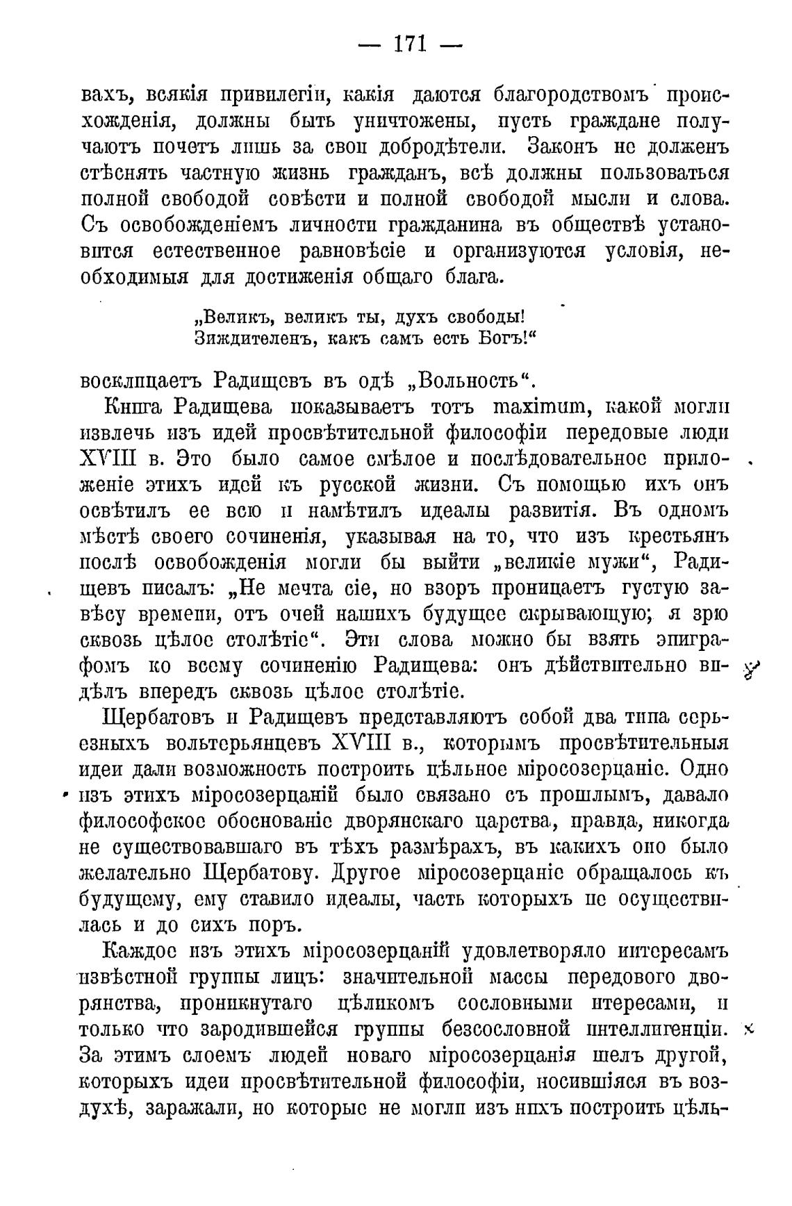 Щербатовъ и Радищевъ представляютъ собой два типа серь-