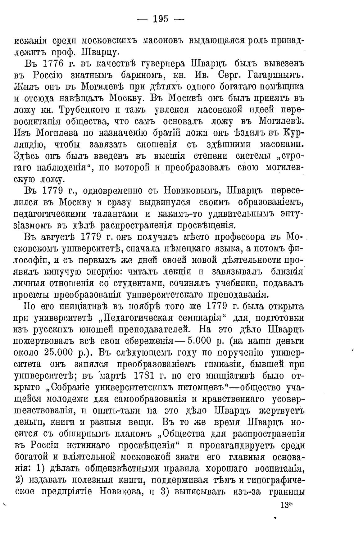 Въ 1779 г., одновременно съ Новиковымъ, Шварцъ пересе-