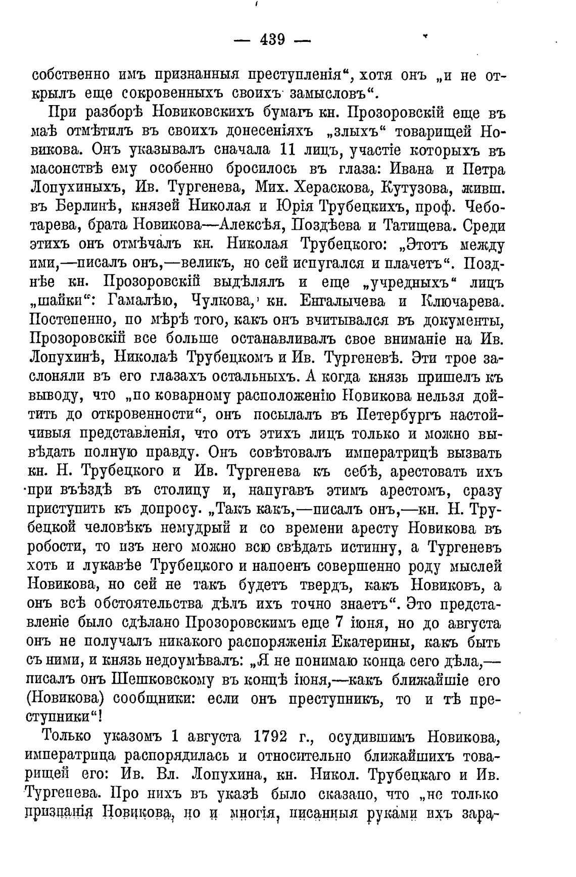 Только указомъ 1 августа 1792 г., осудившимъ Новикова,