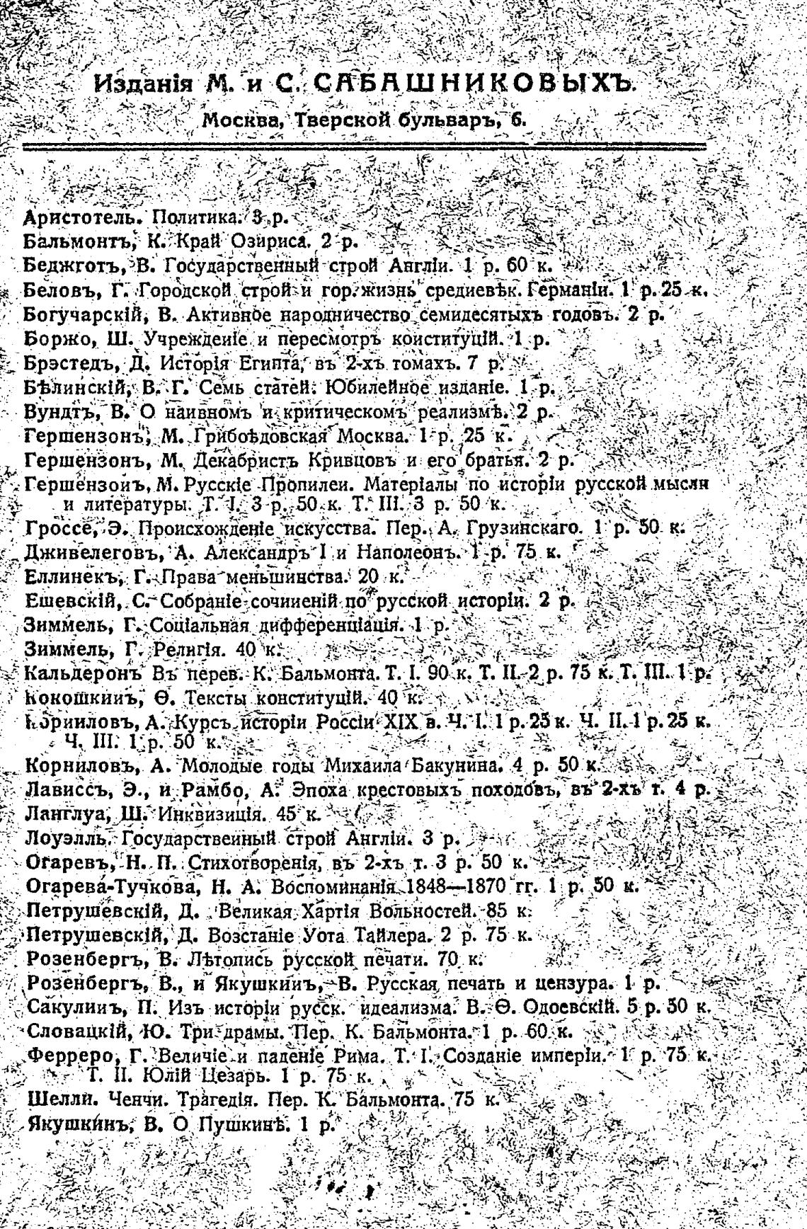 Гершензон{'; М. ТрЙбоЬд6вёкая Москва; 1:р. •25 •к.
