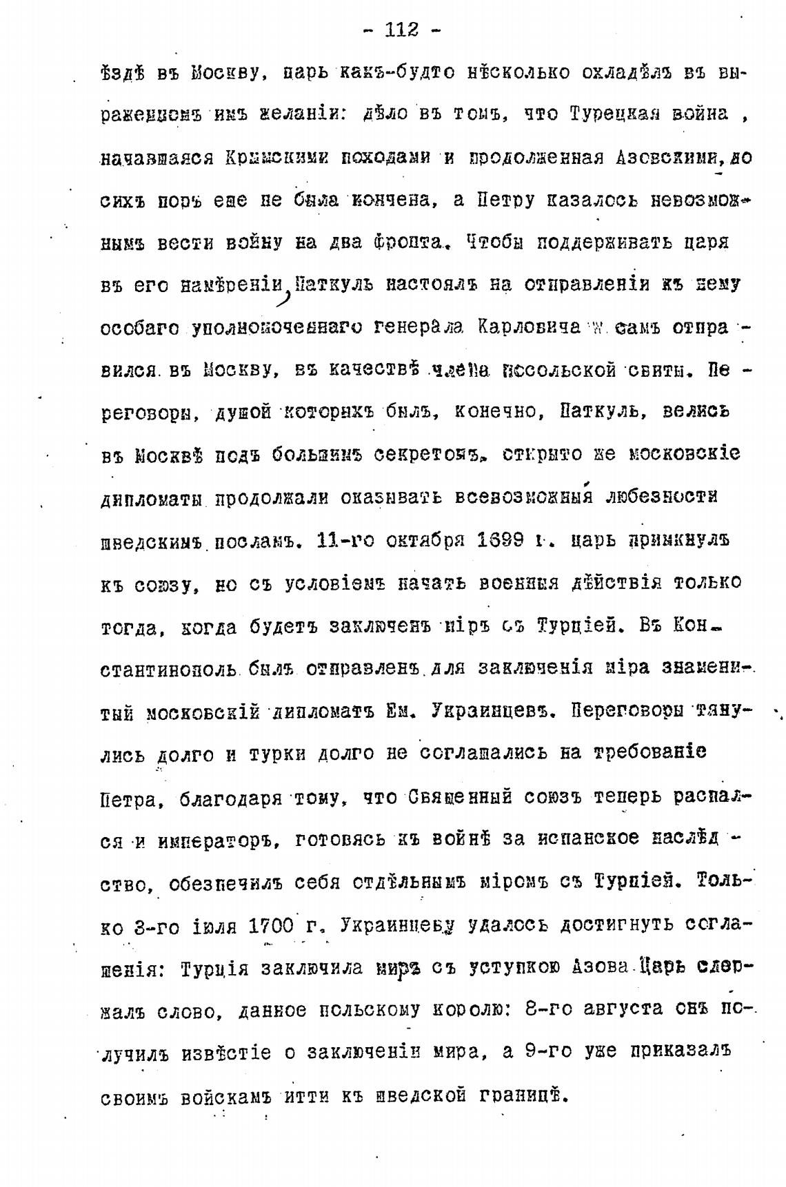 Турц1я заключила кирз съ уступкою Азова. Царь едер-