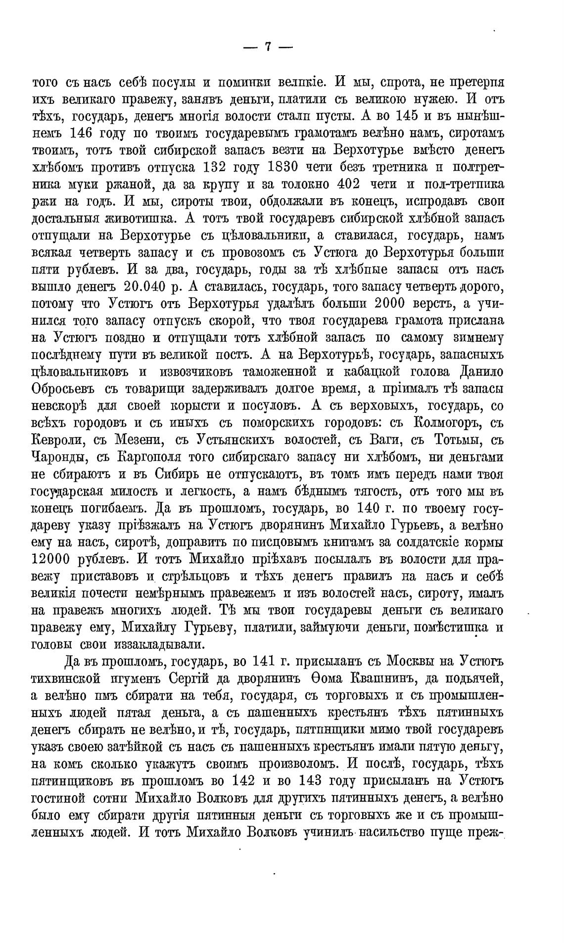 Да въ прошломъ, государь, во 141 г. присыланъ съ Москвы на Устюгь
