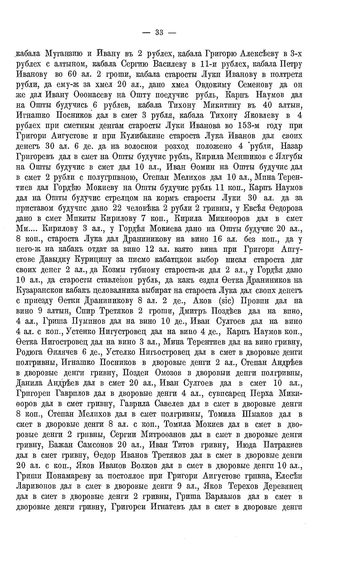 своих денег 2 ал., да Козмы губному староста-ж дал 2 ал., у Горд'ђя дано