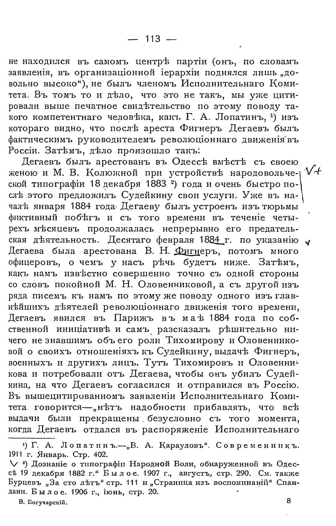 Бурцевъ „За сто л±тъ” стр. 111 и „Страница изъ воспоминауйй” Спан-
