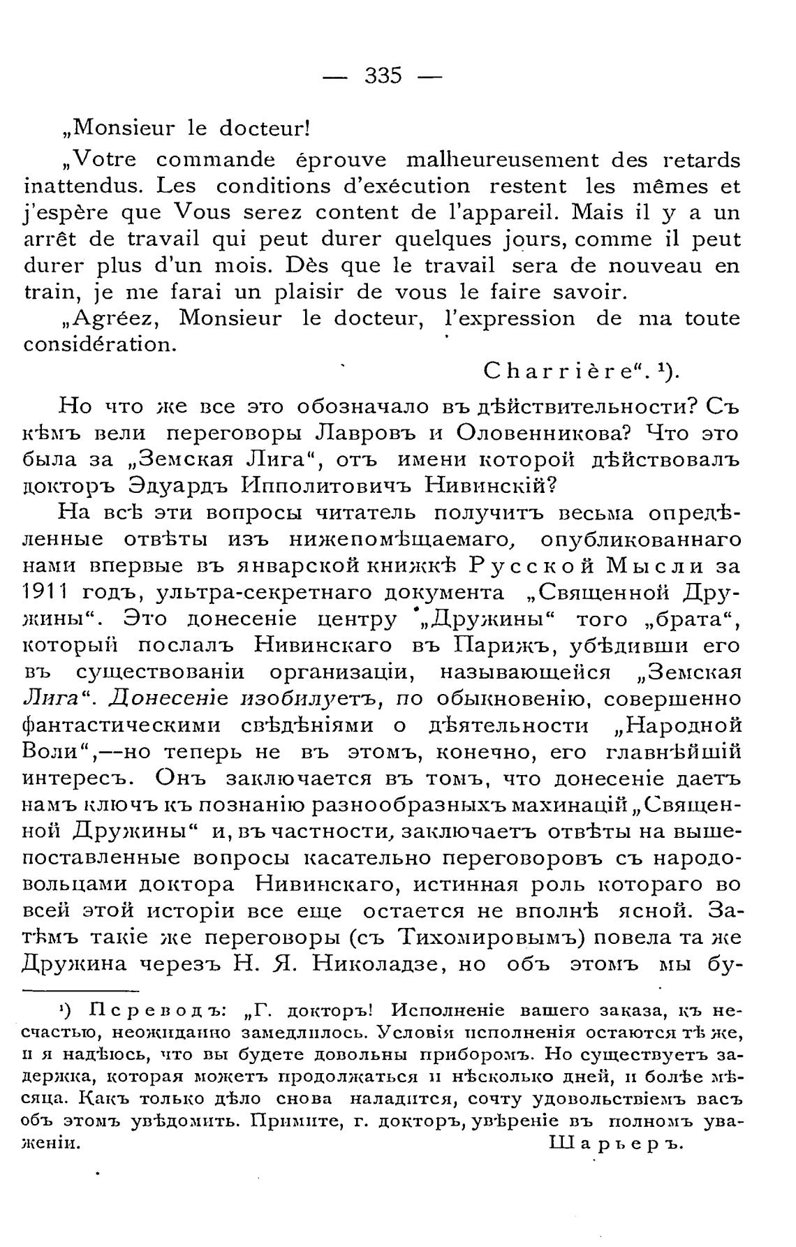 1) П с р е в о д ъ: „Г. докторъ! вашего заказа, кь не-
