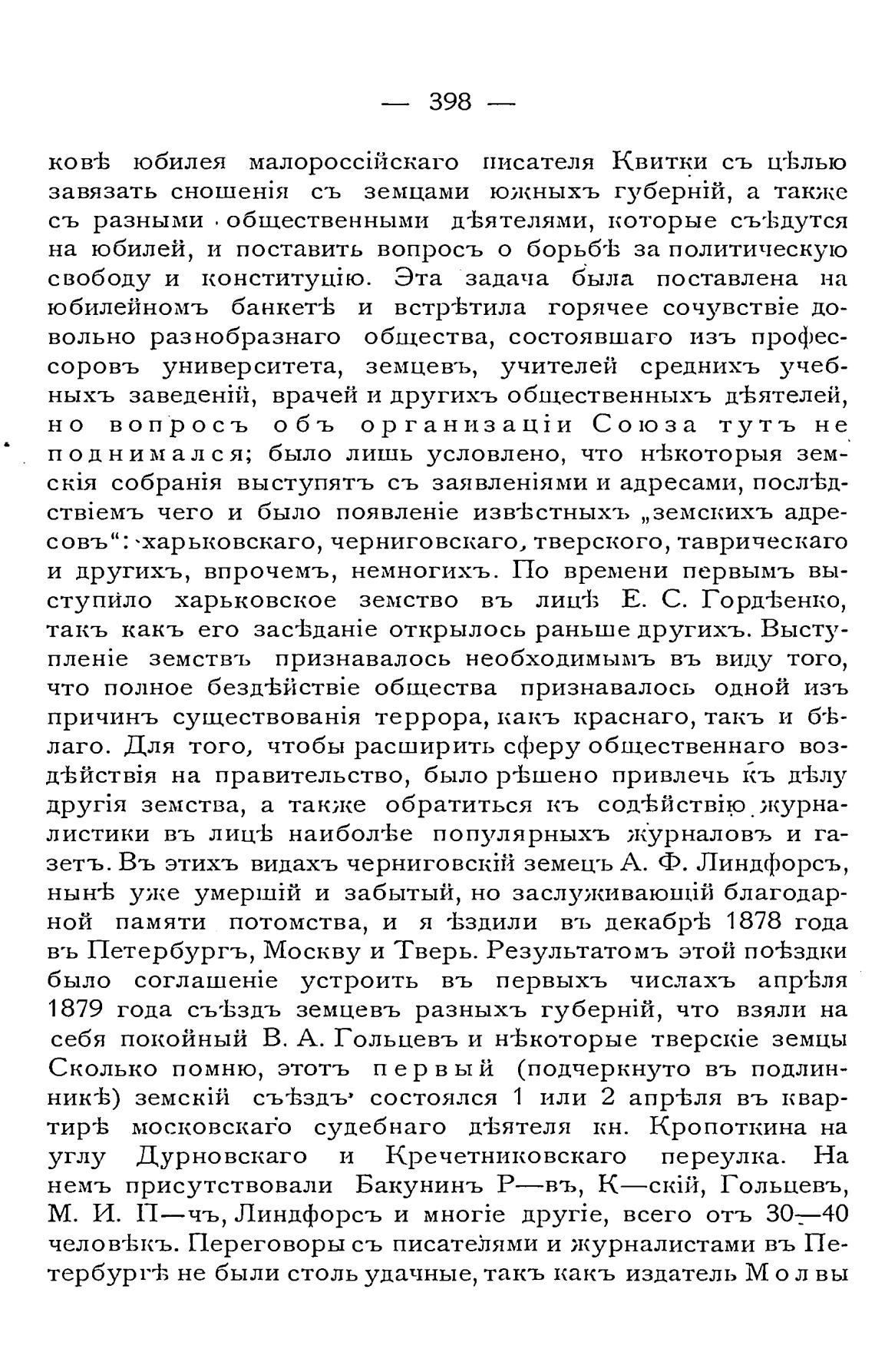 себя покойный В. А. Гольцевъ и н-Ькоторые TBepckie земцы