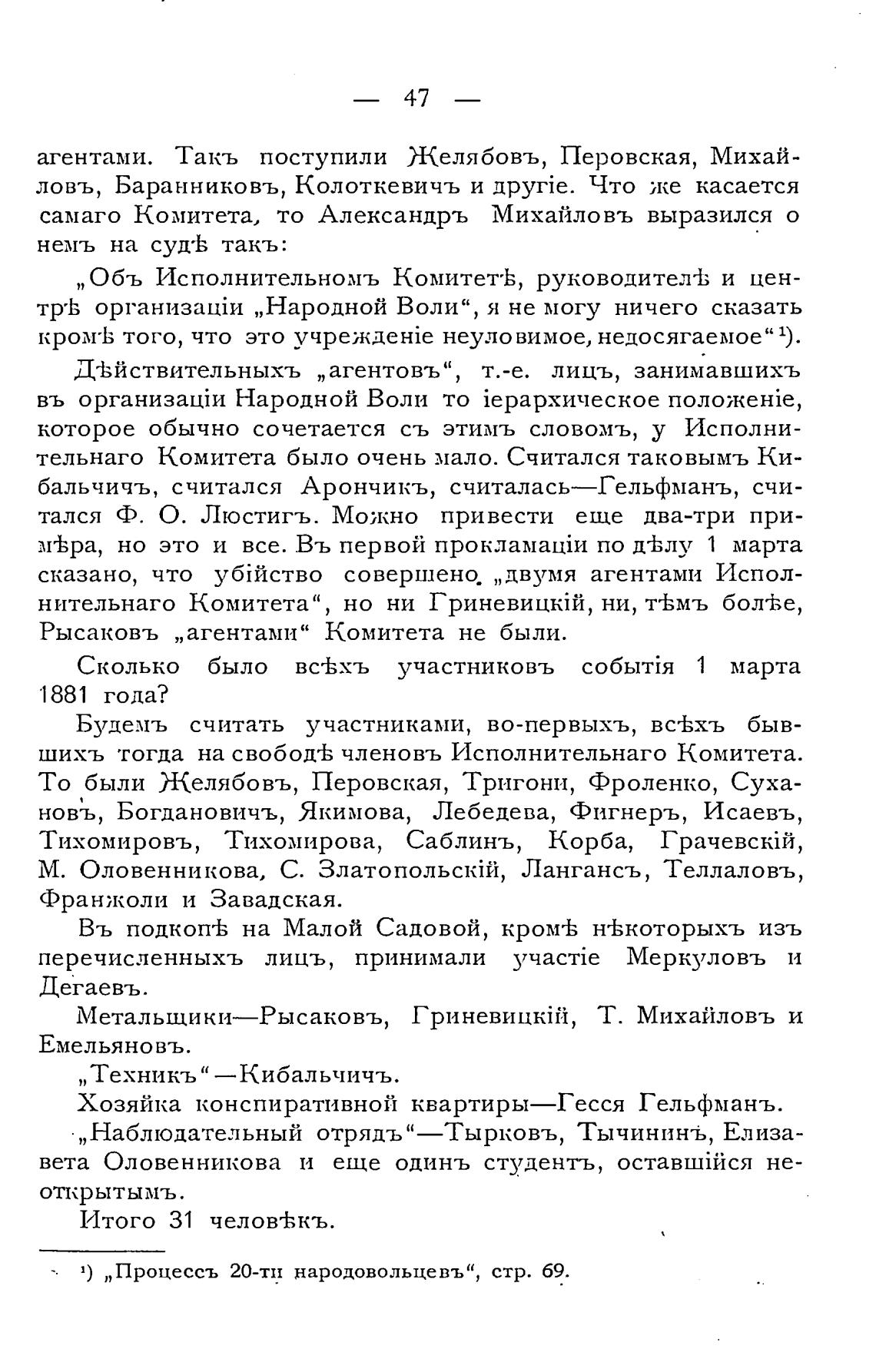 1) „Процессъ 20-тп народовольцевъ“, стр. 69.