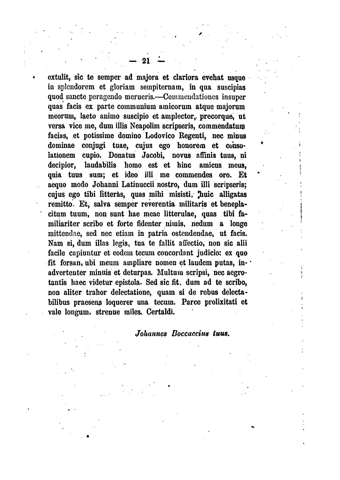vale longum, strenue miles. Certaldi.