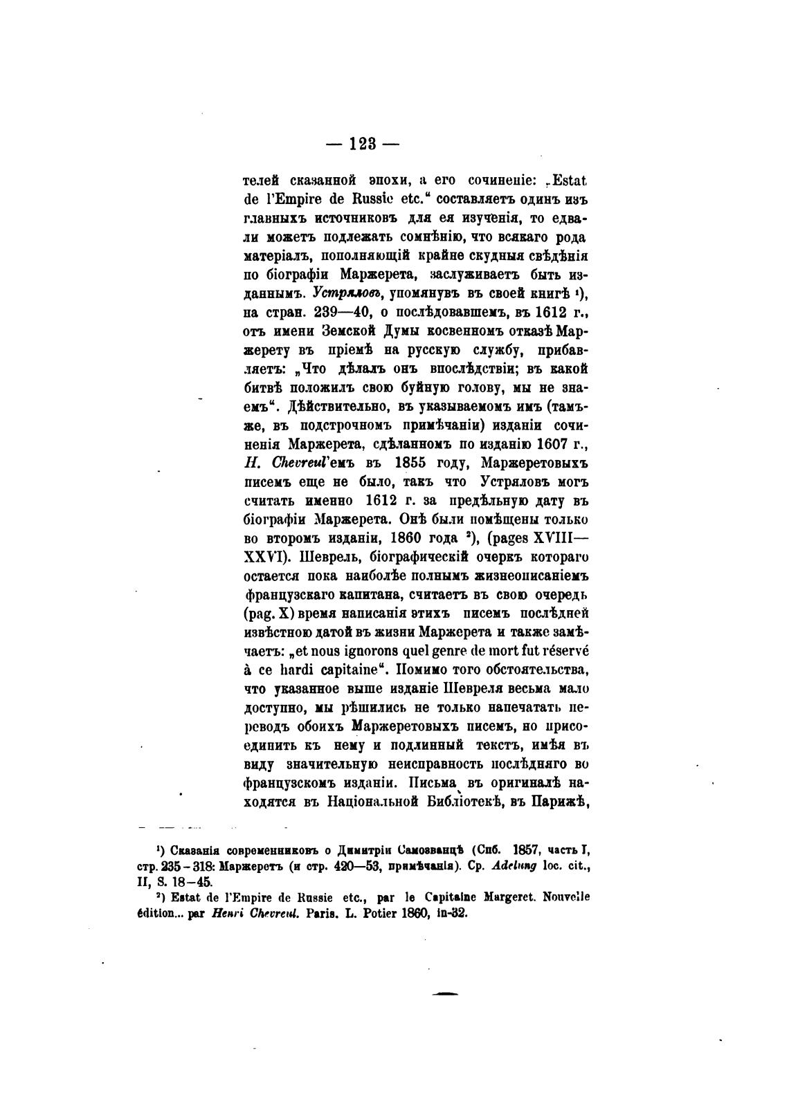 реводъ обоихъ Маржеретовыхъ писемъ, но ирисо-