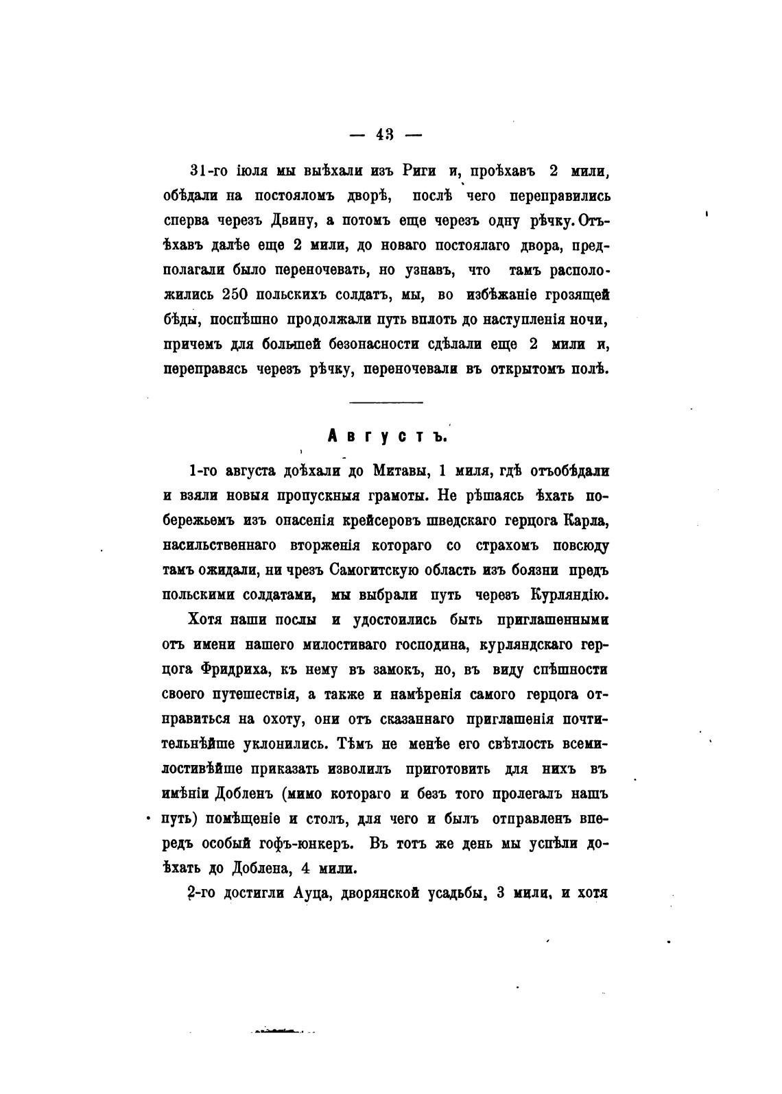 1-го августа дйхали до Митавы, 1 миля, отьоб%дади