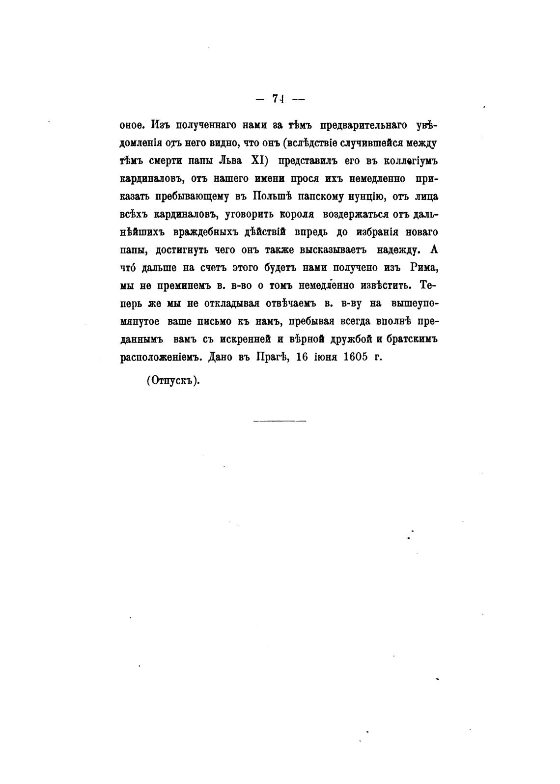 Дано въ Пращ 16 1605 г.