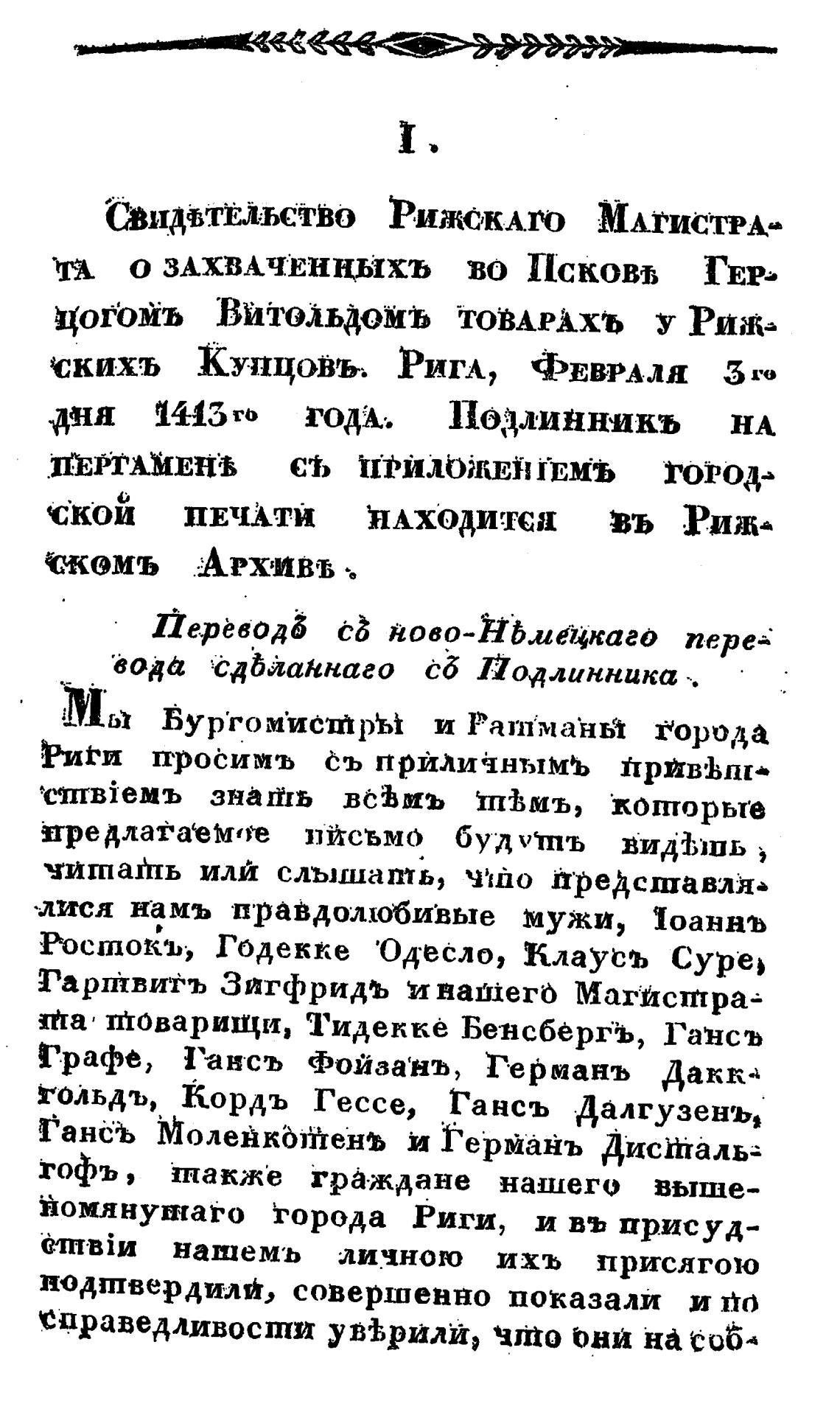 СвидвтЁЛ.ьеТВо Рижсклго МАГистрА•