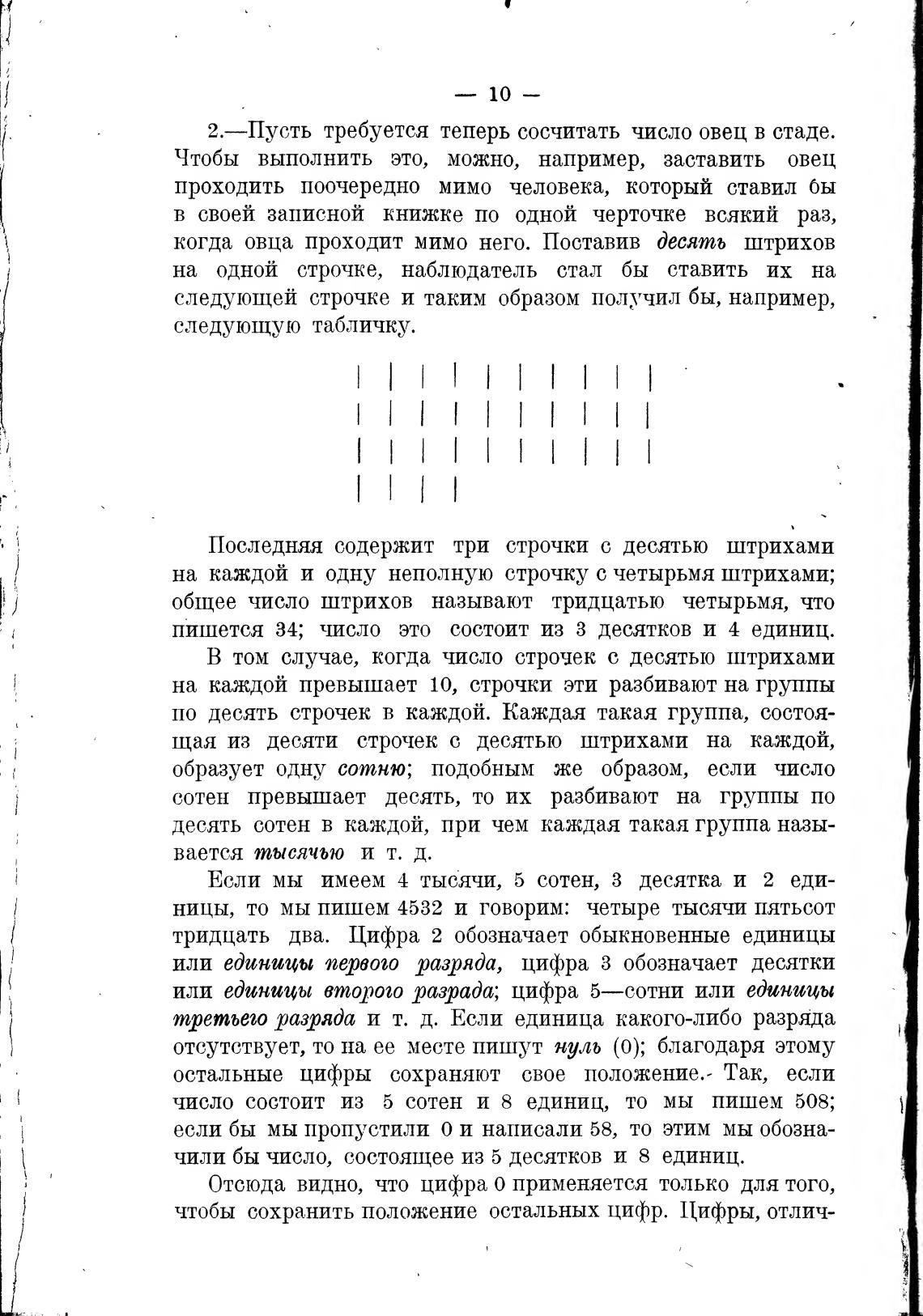щая из десяти строчек с десятью штрихами на каждой,
