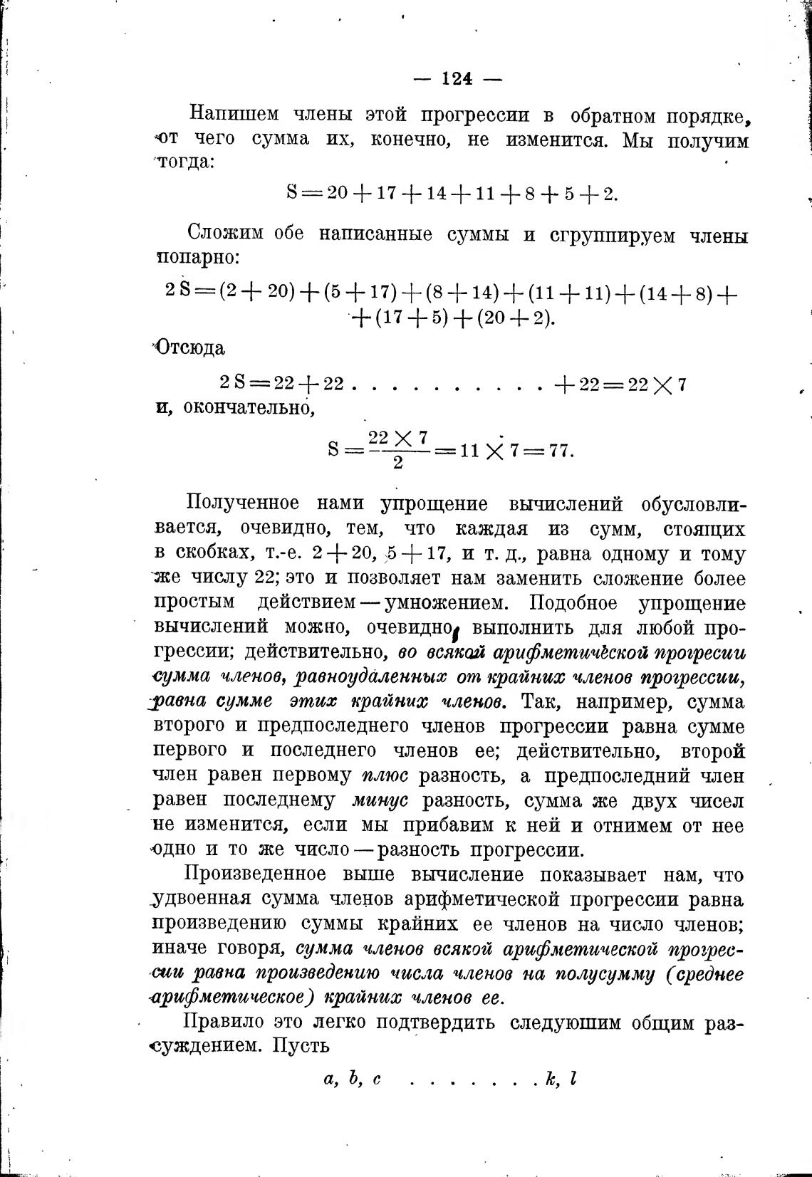 иначе говоря, сумма членов всякой арифметической прозрес-