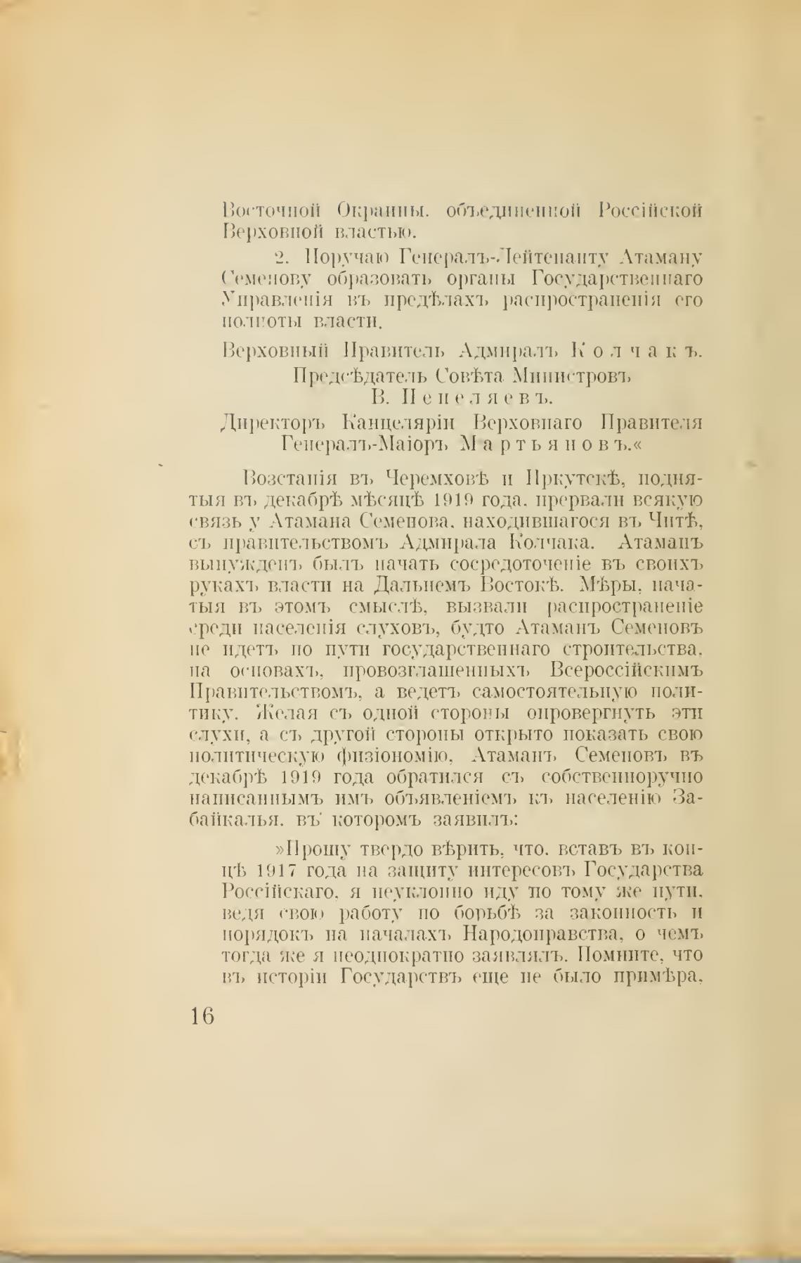 съ правительствомъ Адмирала Колчака. Атамань