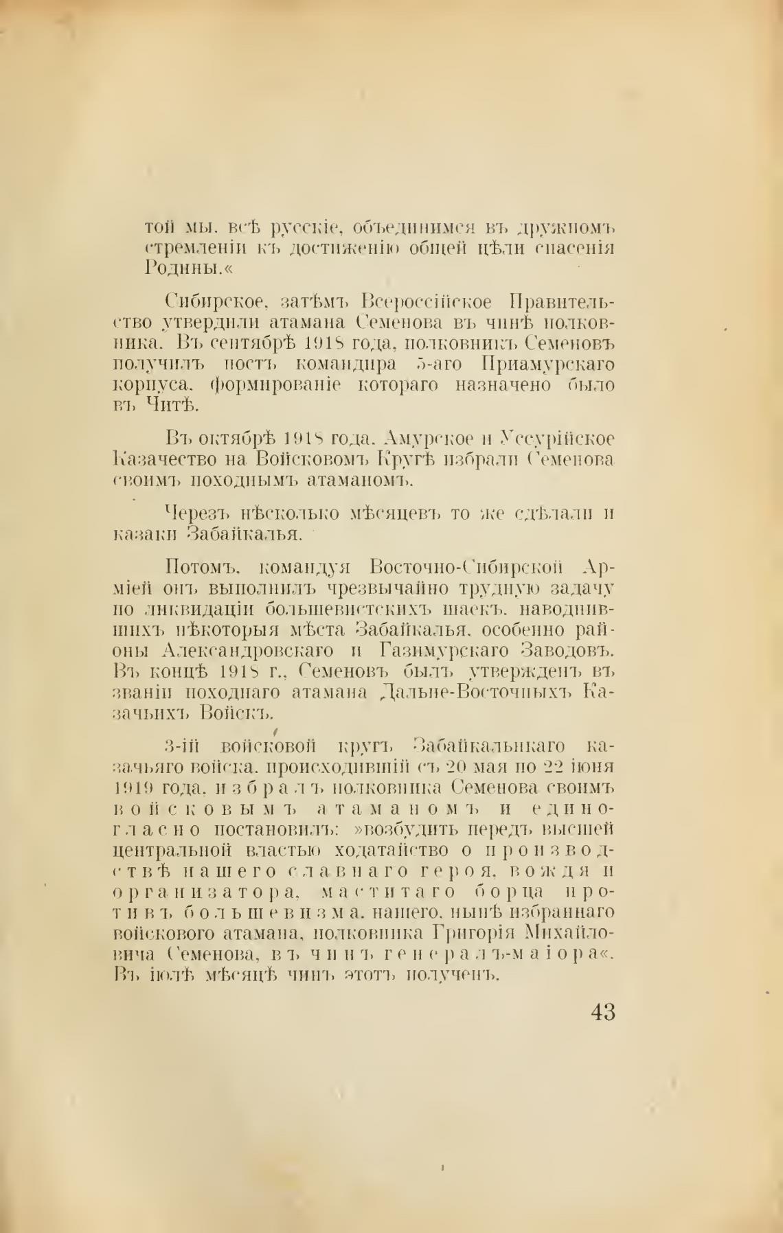 1919 года. з б р а л ъ полковника Семенова свонмъ