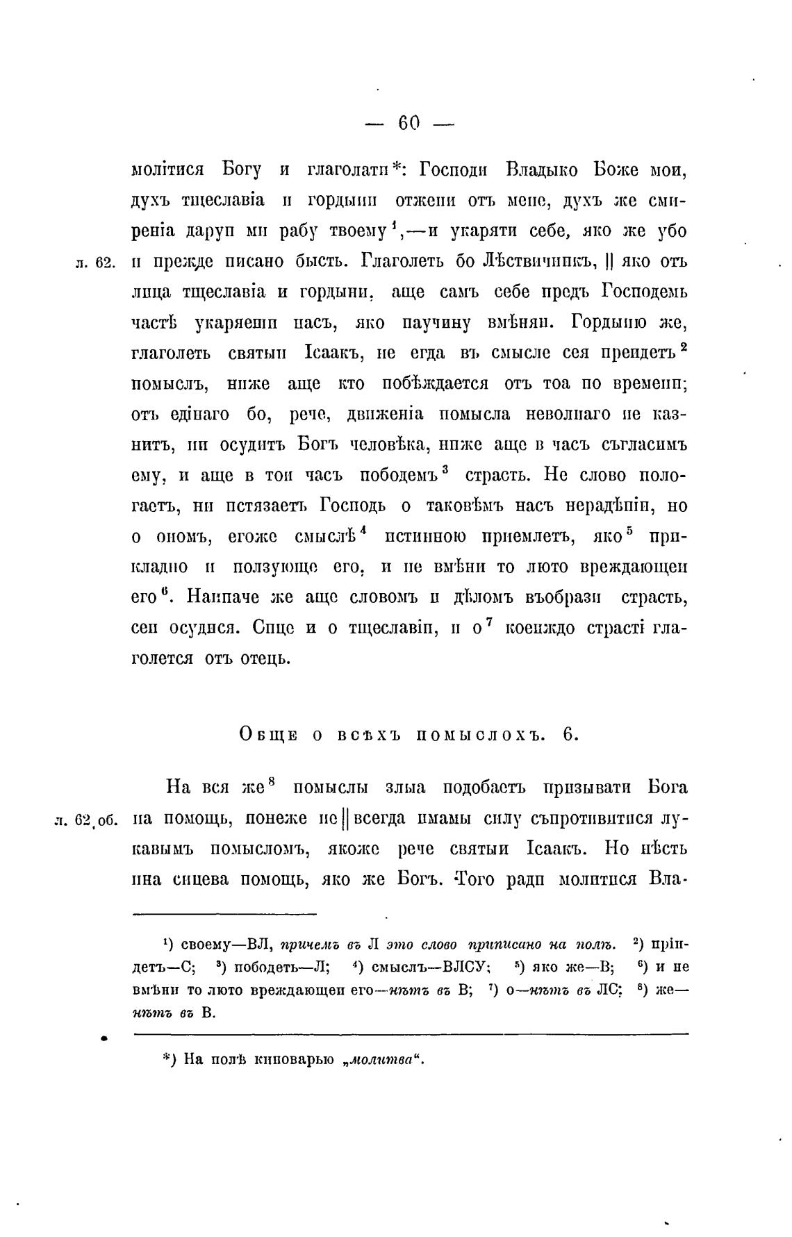 деть—С; 3) пободеть—Л; 4) смыслъ—ВЛСУ; 5) яко же—В; 6) и не
