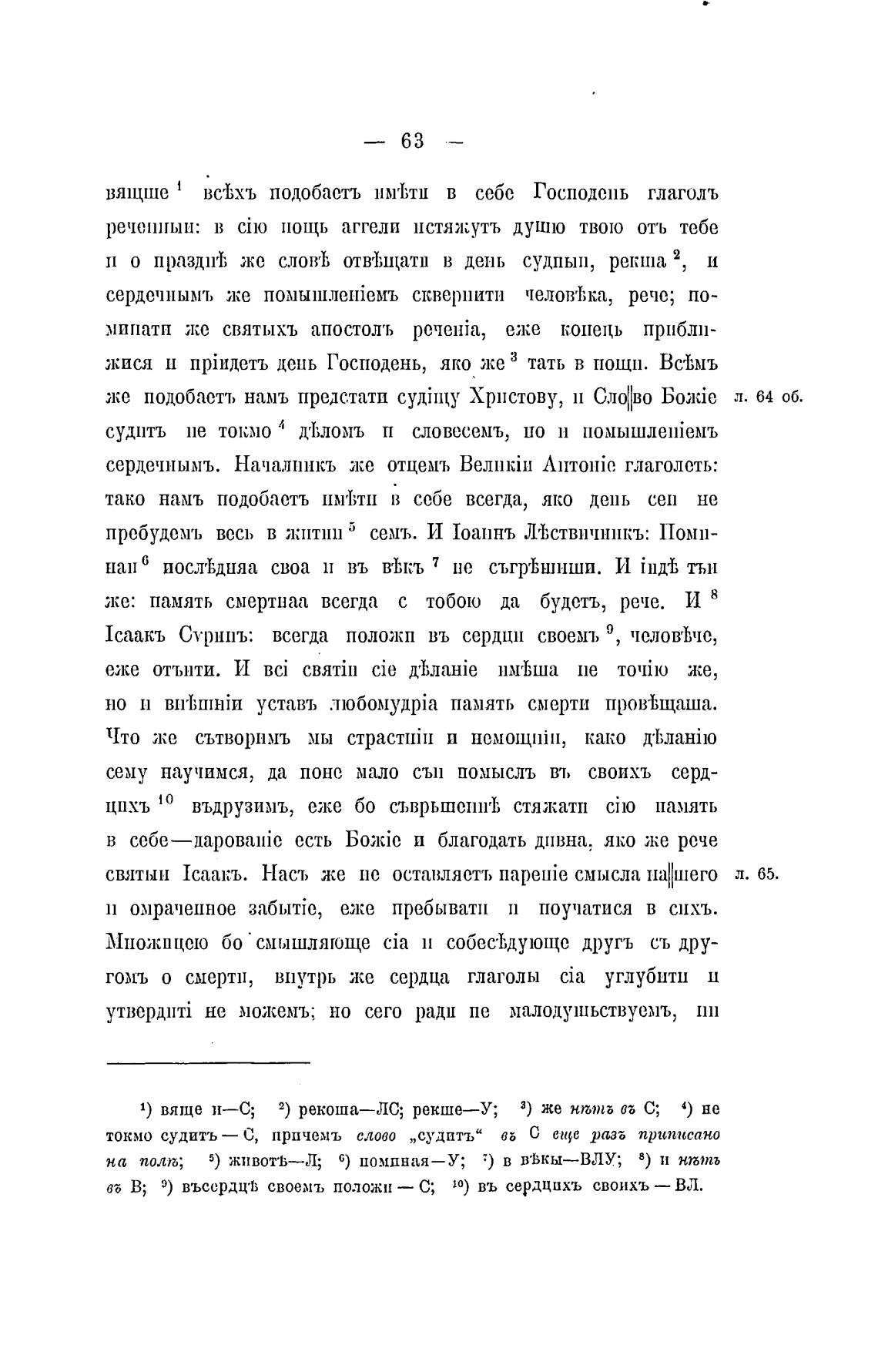 святын Icaakb. Наст, же по оставляотъ паретйе смысла л. 65.