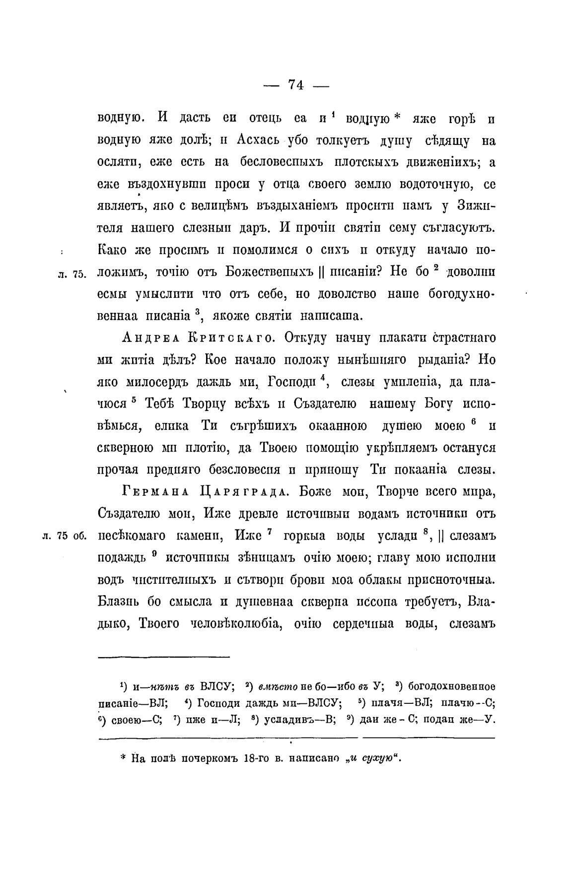 л. 75 об. несТкомаго камени, Иле 7 горкыа воды услади 8, ll слезамъ