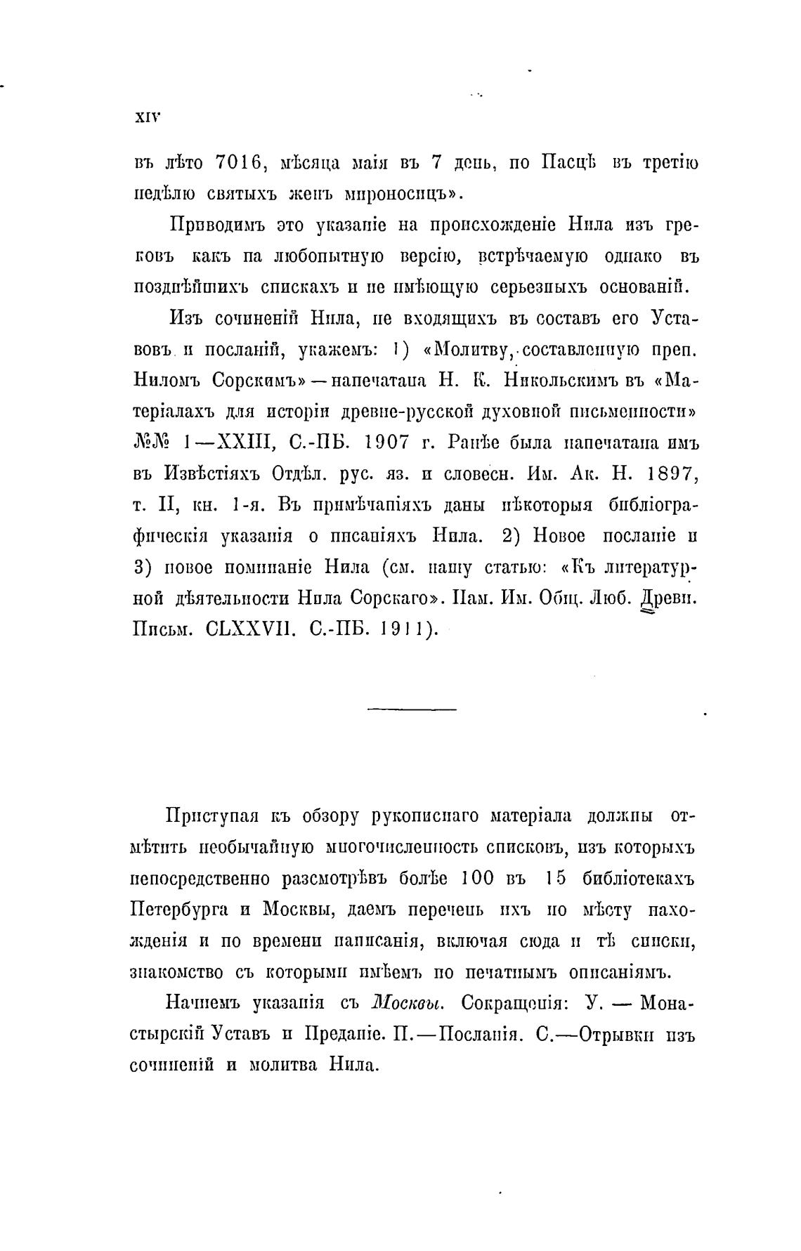 Ниломъ Сорскимъ» — напечатана Н. К. Никольскимъ въ «Ма-