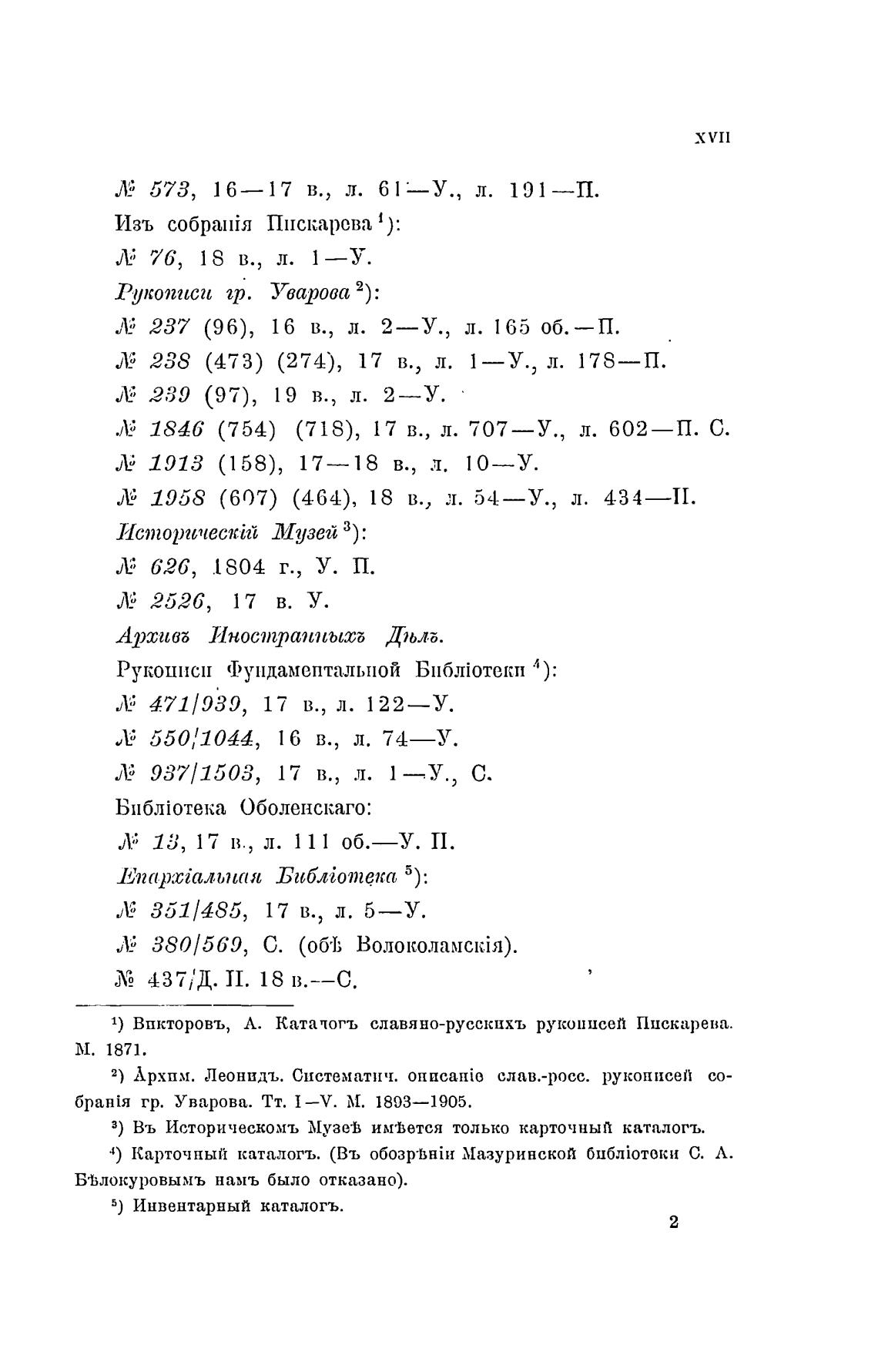 1) Впкторовъ, Л. Каталогъ славяно-русскцхъ рукописей Пискарева.