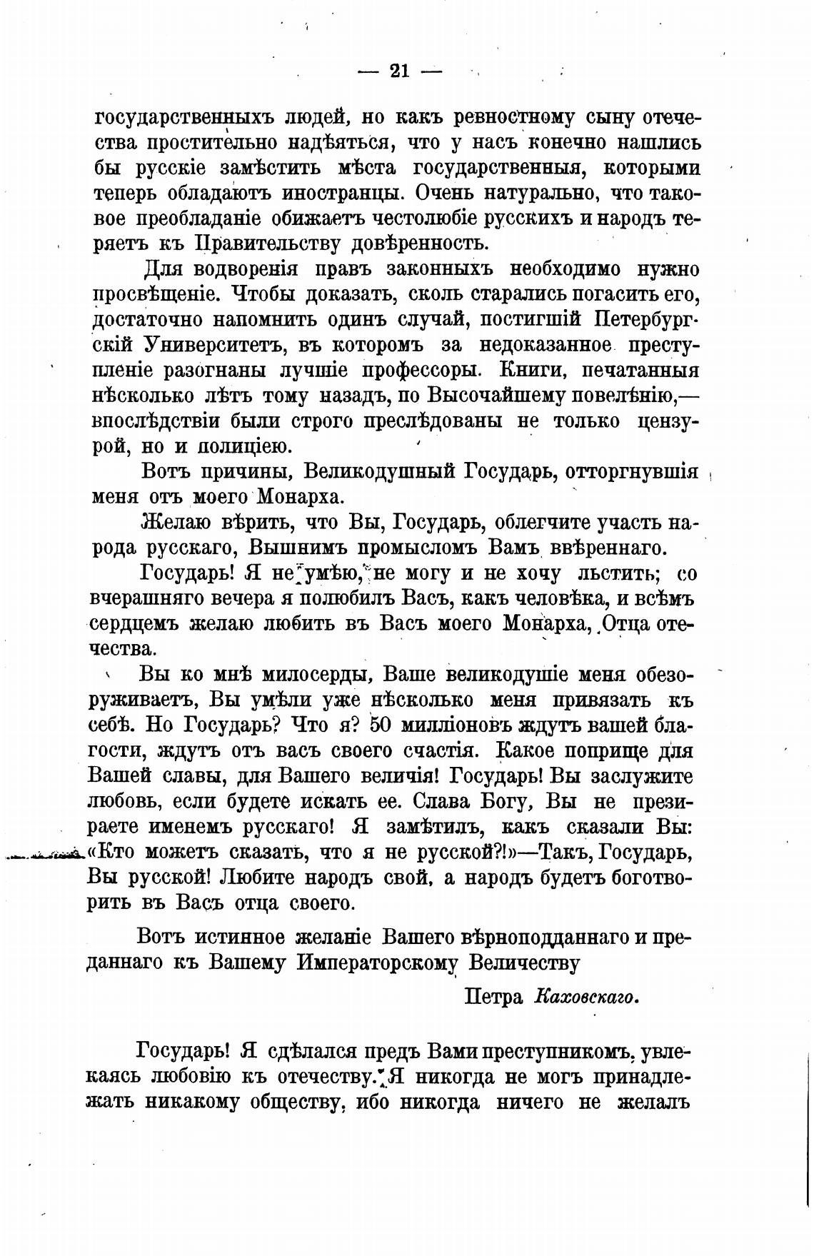 Государь! Я сдолался предъ Вами преступникомъ, увле-