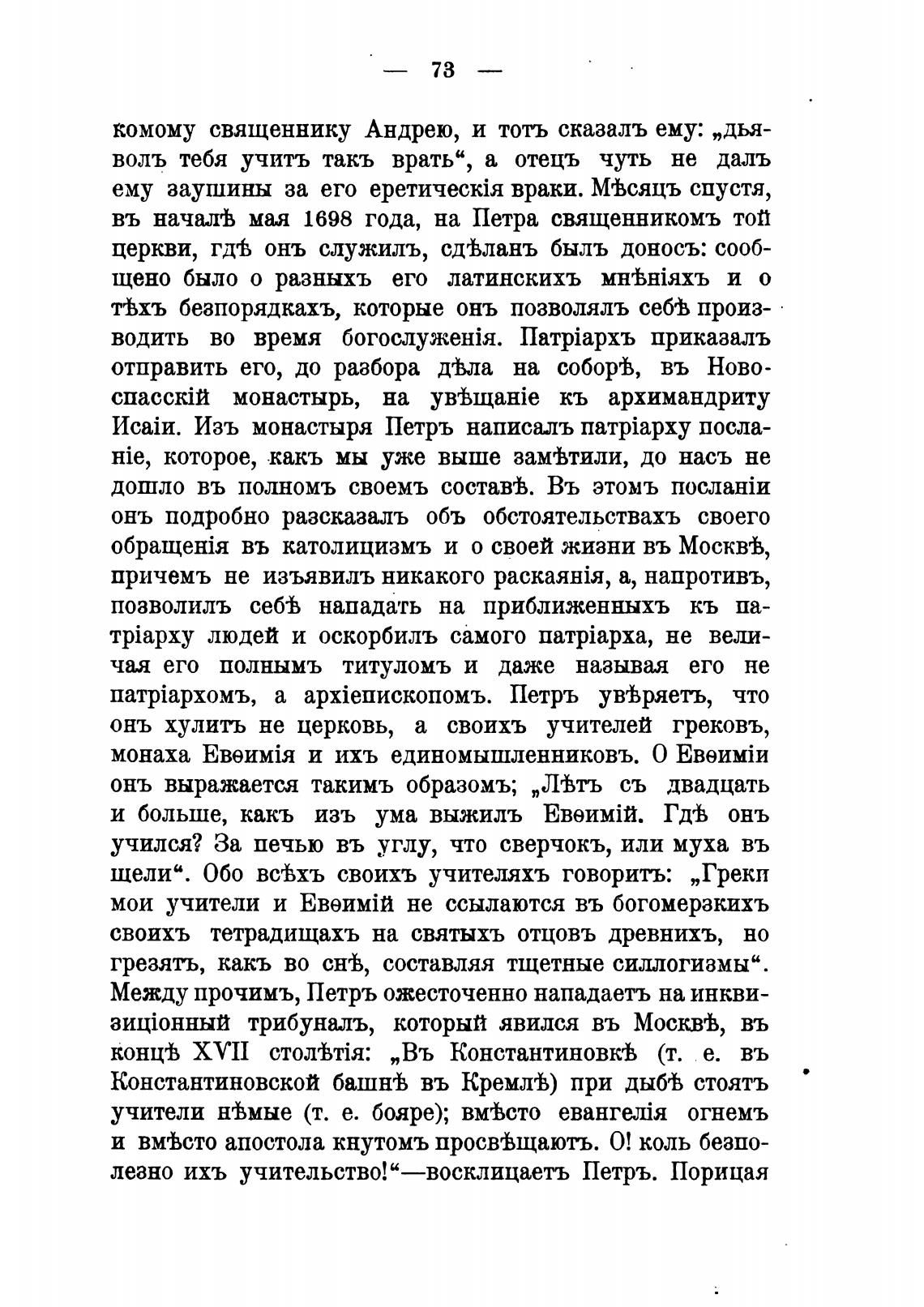Между прочимъ, Петръ ожесточенно нападаетъ на инкви-