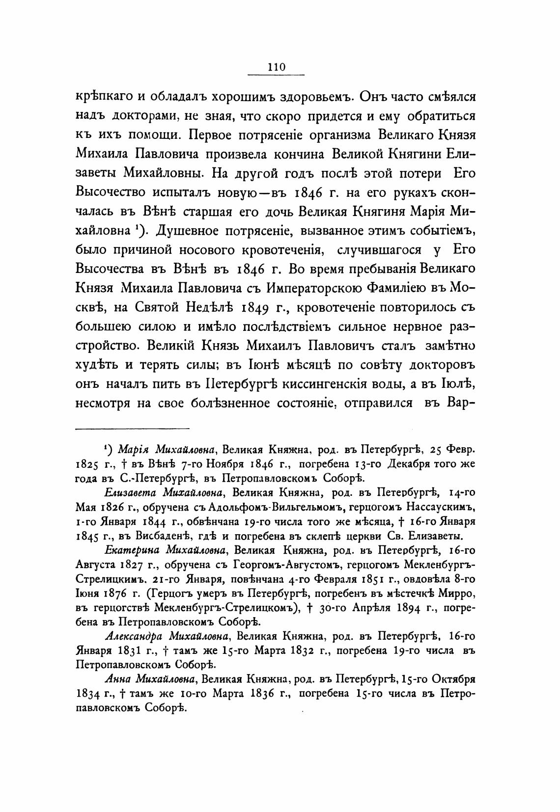 Михаила Павловича произвела кончина Великой Княгини Ели-