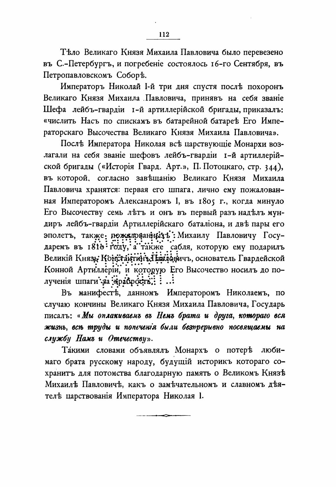 раторскаго Высочества Великаго Князя Михаила Павловича».
