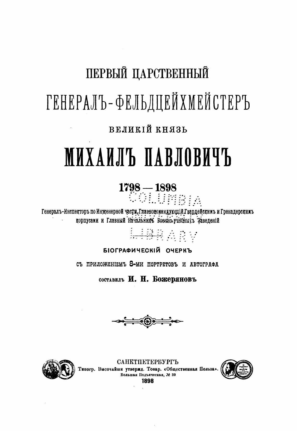 съ прилож;ншмъ В-ми ПОРТРЕТОВЪ и АВТОГРАФА