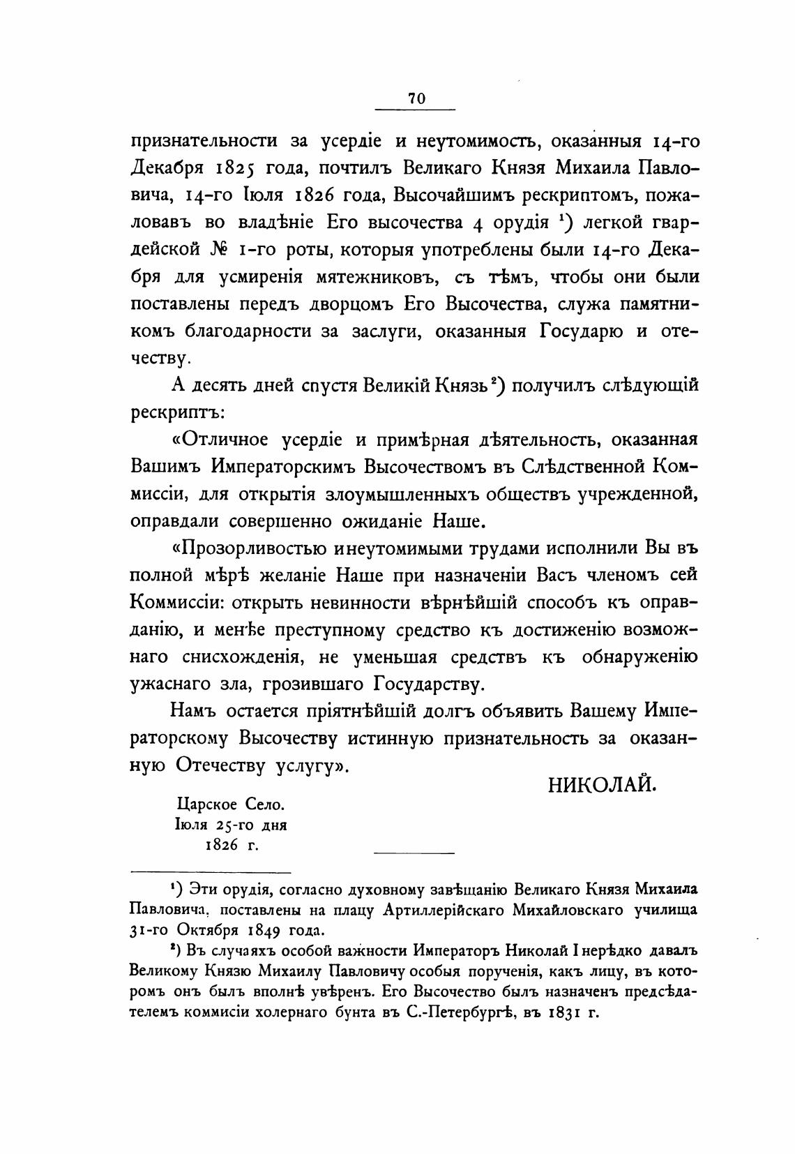 Декабря 1825 года, почтилъ Великаго Князя Михаила Павло—