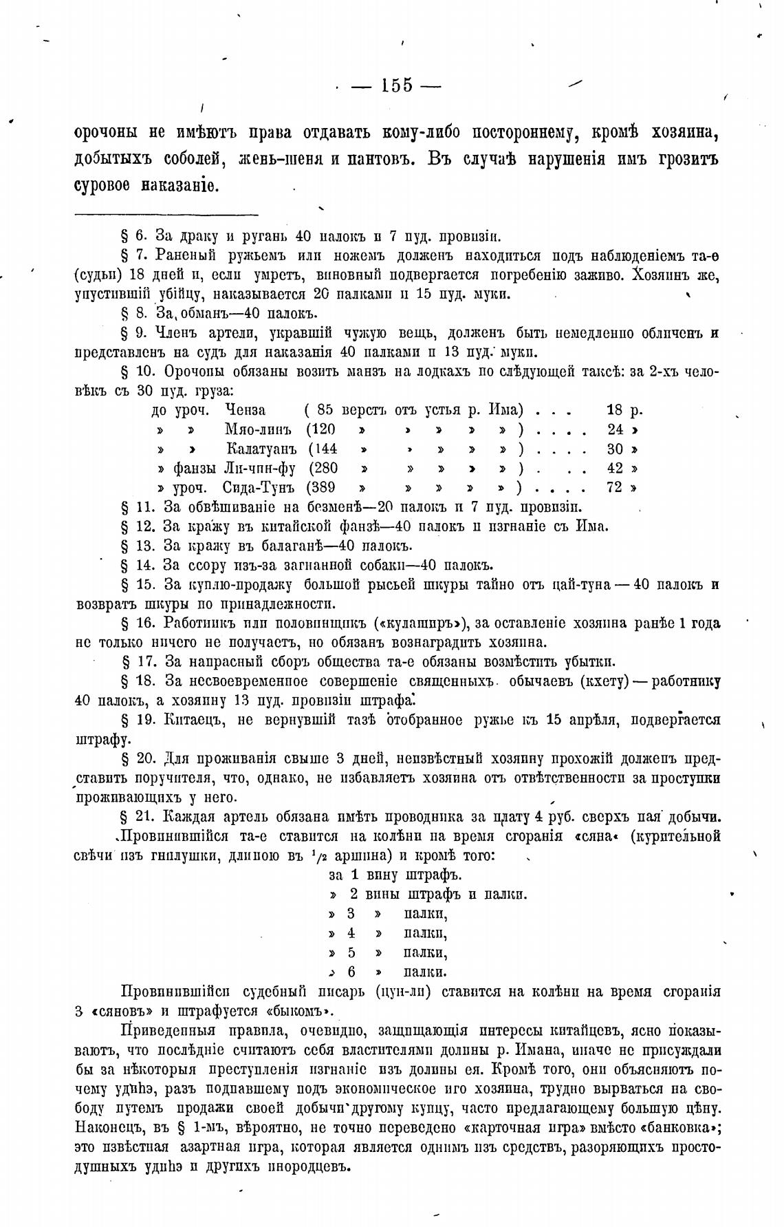 S 10. Орочоны обязаны возить манзъ на лодкахъ по сМдующей талсТ,: за 2-хъ чело-