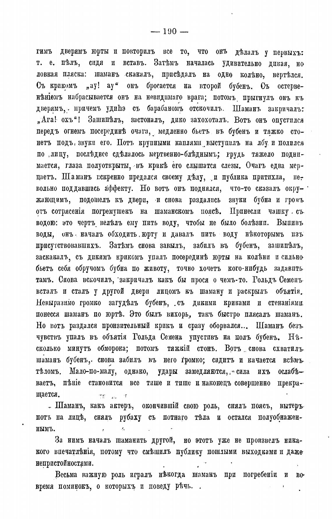 понесся шамань по юртј. Это быль вихорь, такъ быстро плясадъ шамань.