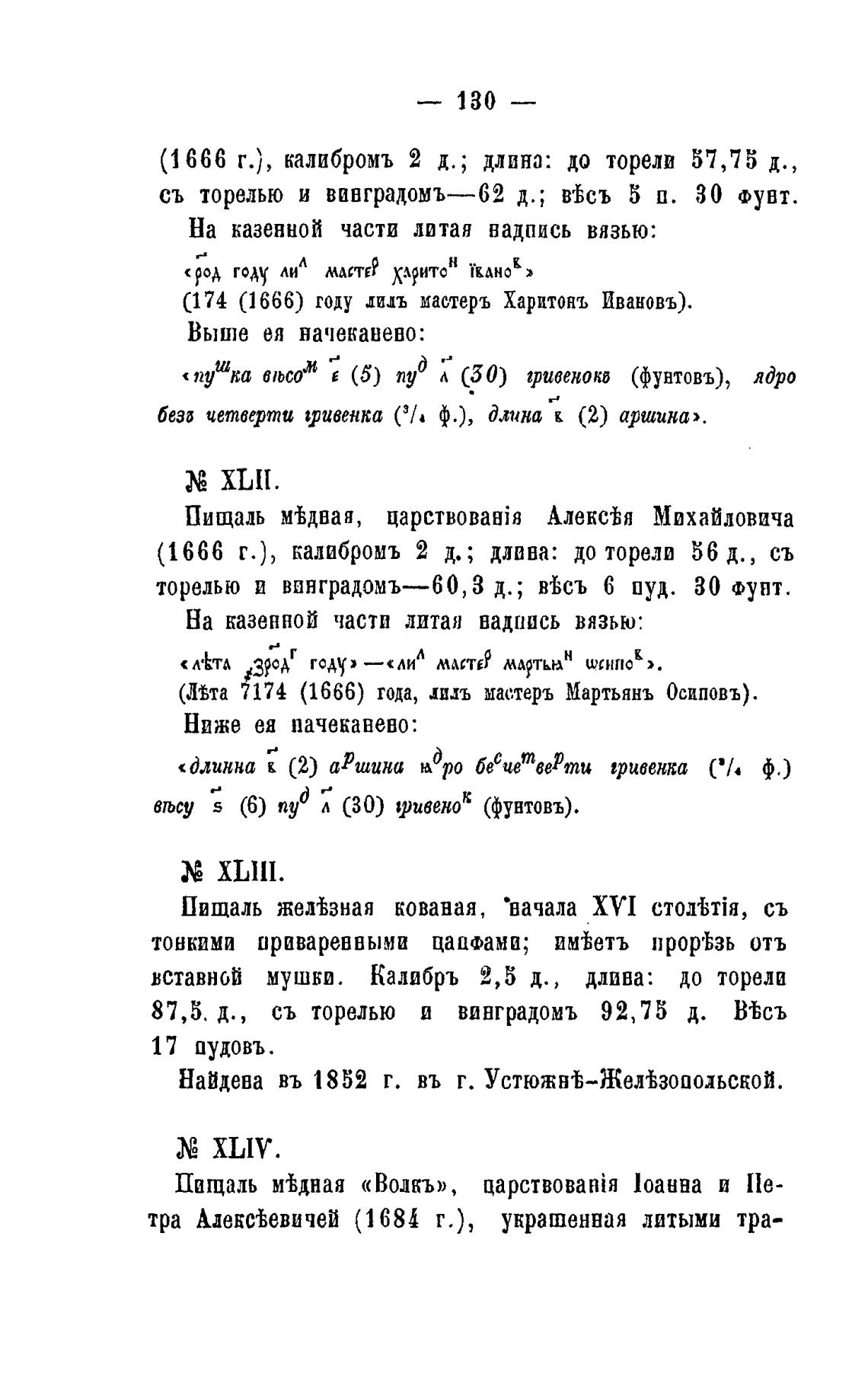 (1666 г.), калибромъ 2 д.; длвва: до торели 56 д., съ