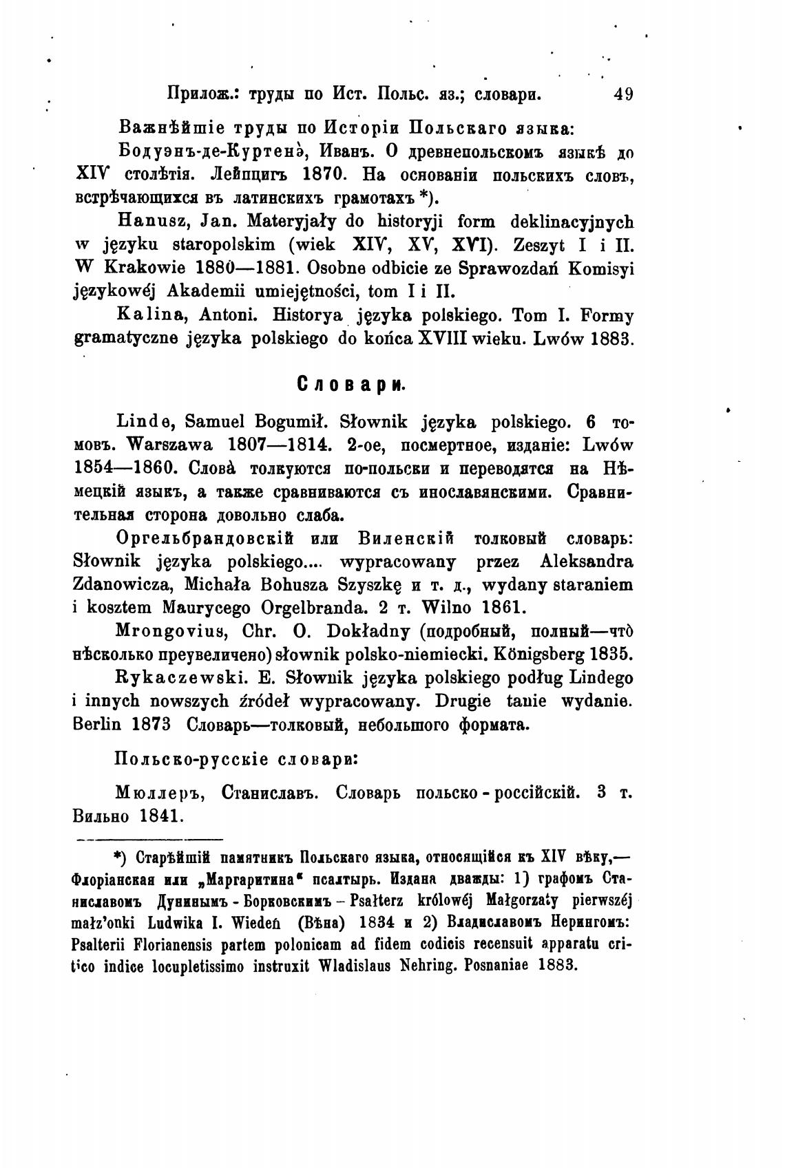 Прилож.: труды по Ист. Польс. яз.; словари.