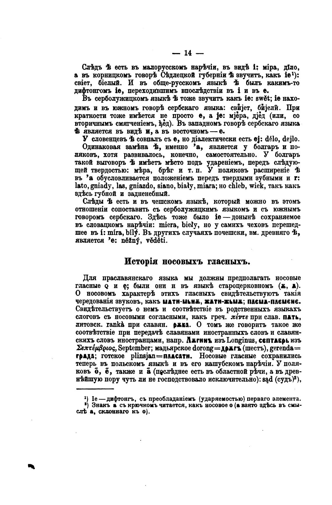 гласные Q и е; были они и въ языкЬ староцерковномъ (к, А).