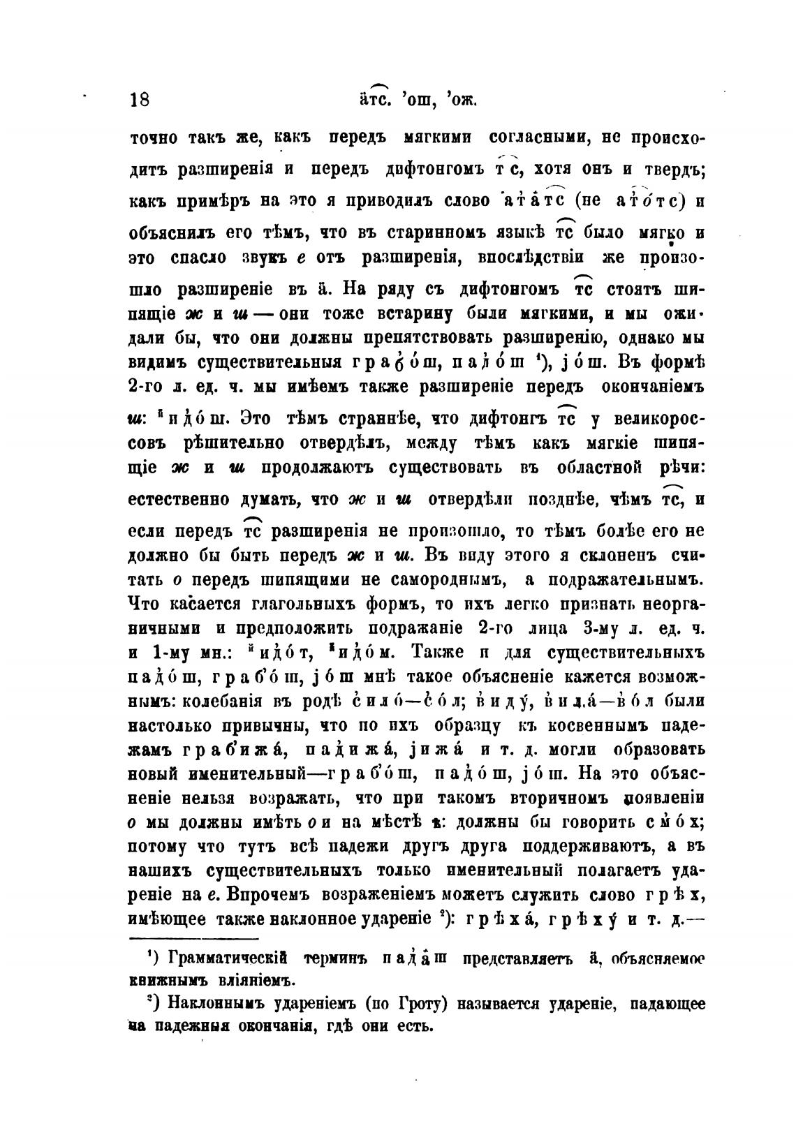 тать о передъ шипящими не самороднымъ, а подражательнымъ.