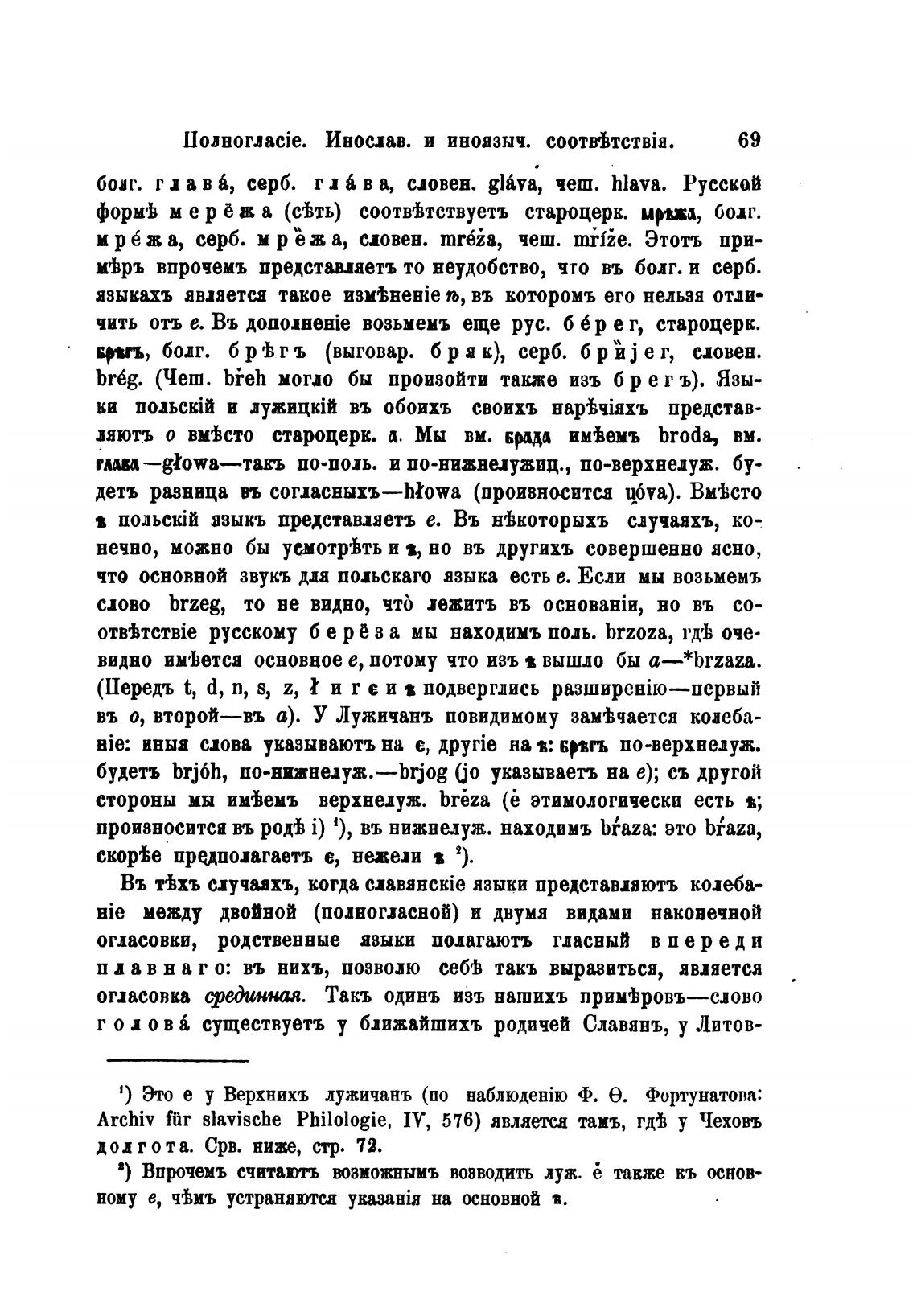 1) Эго е у Верхнихъ лужичанъ (по Ф. е. Фортунатова: