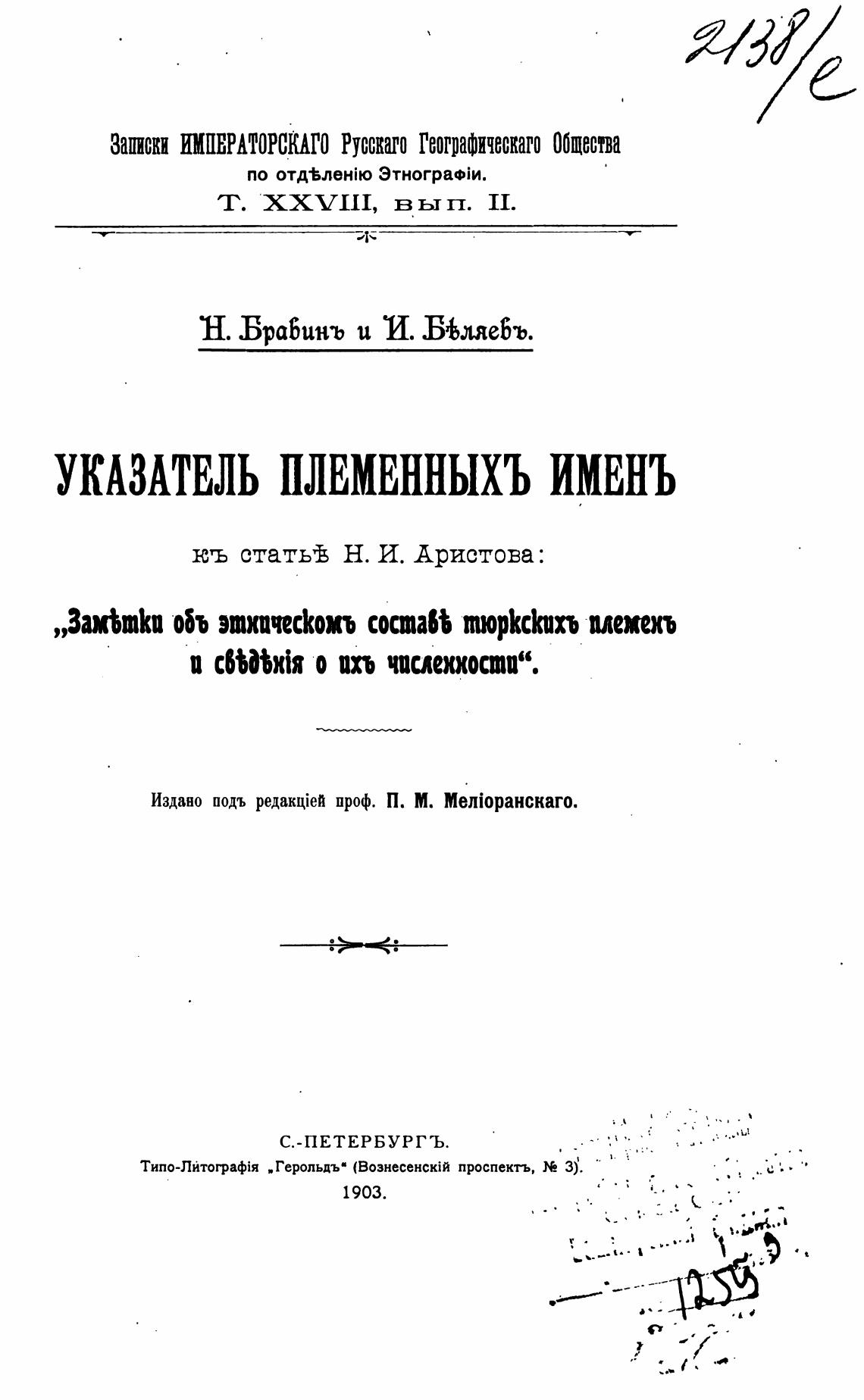 „3амЪтКп объ этничесКомъ состабђ тюрКсКихъ влепл