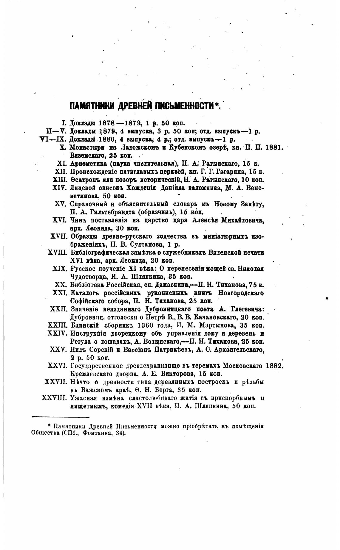 * Памятники Древней Письмеввосты можно npi06piTaTb въ