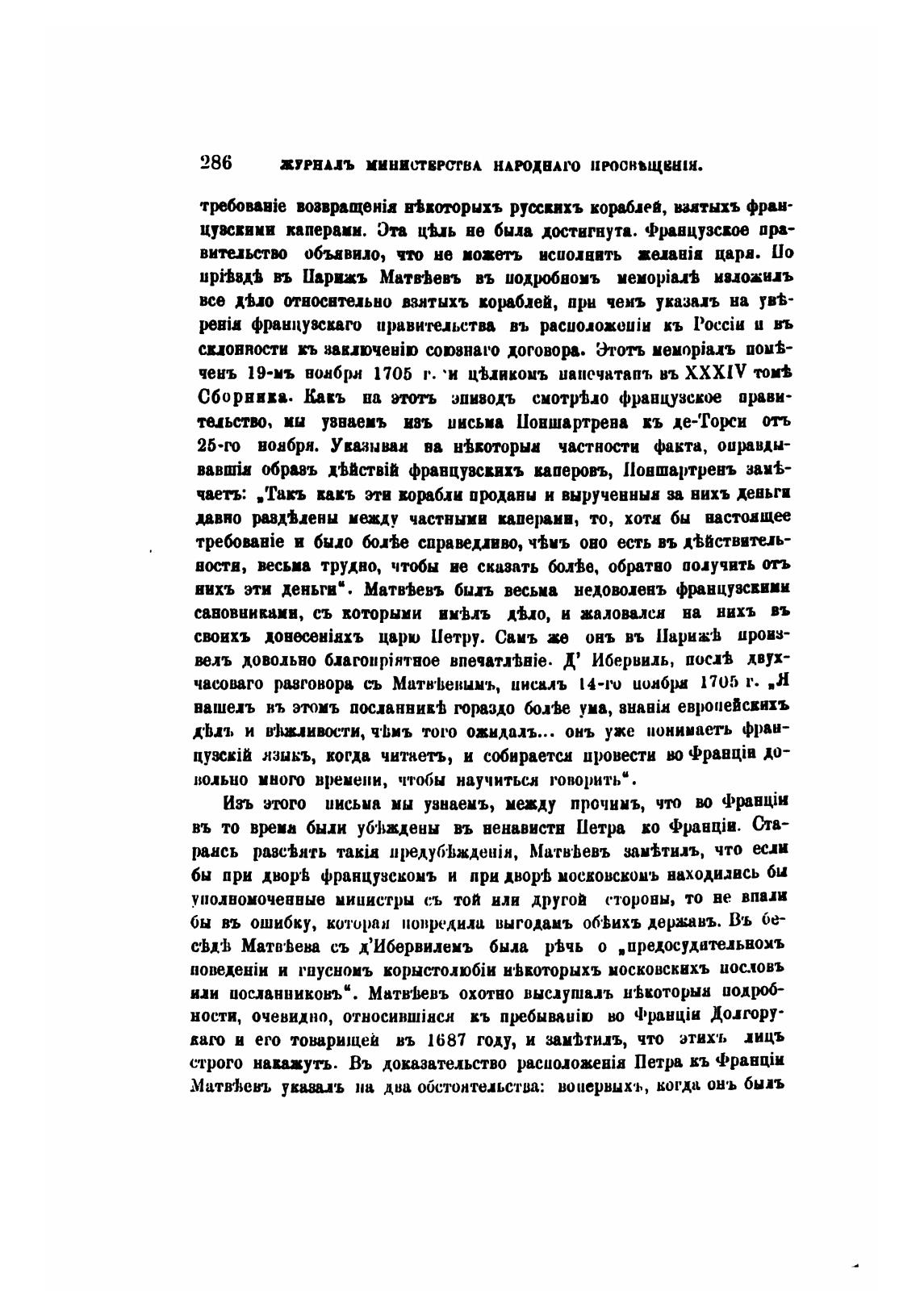 С'Ьд•Ь Матв•Ьева съ д'Ибервилемъ была р•Ьчь о „предчдительвомъ