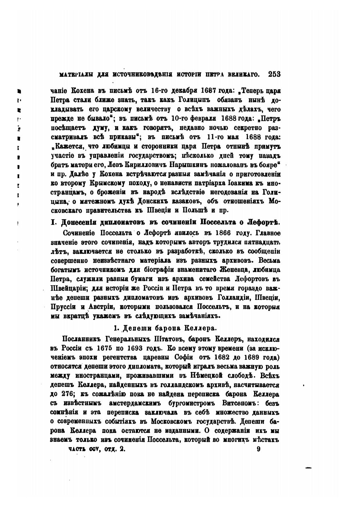 1. Депеши барона Келлера.