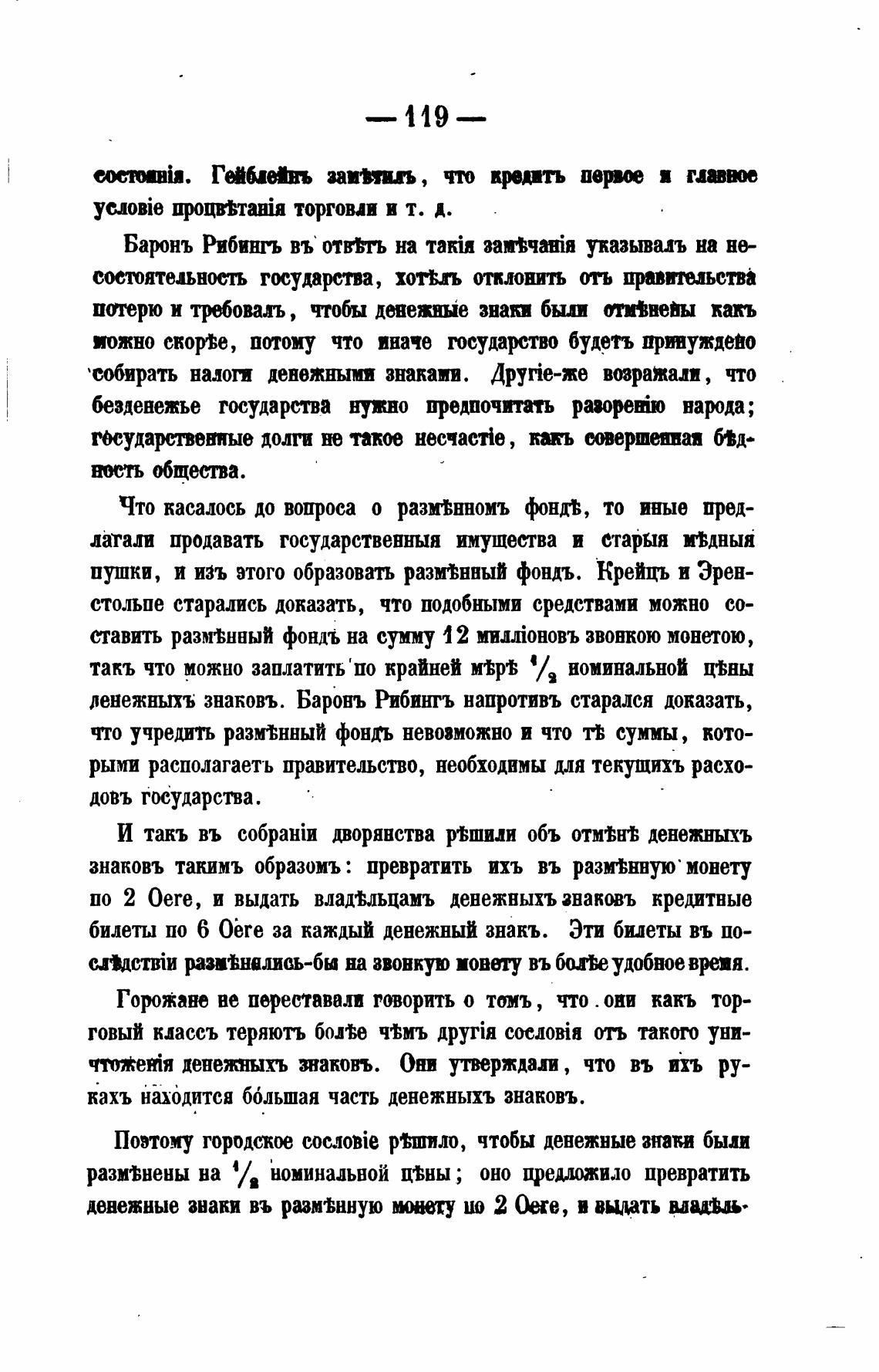 денежныхъ знаковъ. Баронъ Рибингъ напротивъ старался доказать,