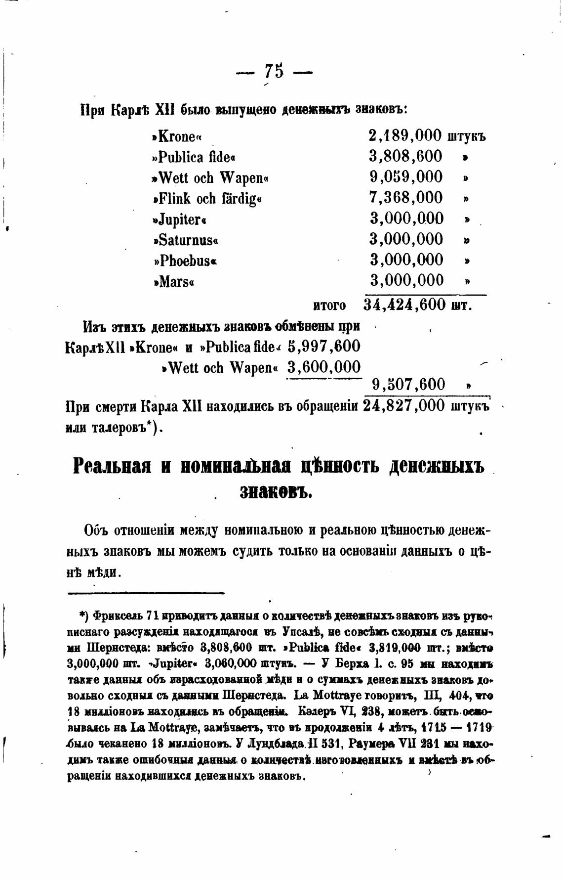 При смерти Карла XlI находились въ 24,827 ,ООО штукъ
