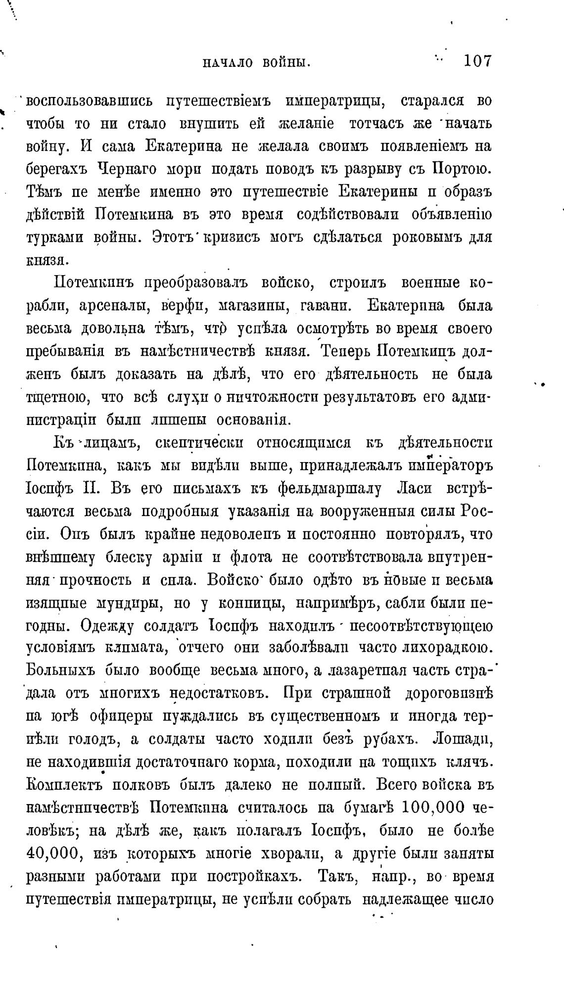 Потемкпнъ преобразовалъ войско, строилъ военные ко-