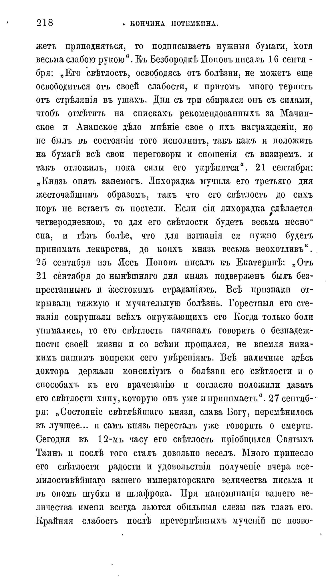 25 сентября изъ Яссъ Поповъ писалъ кь ЕкатерингЬ: „Отъ