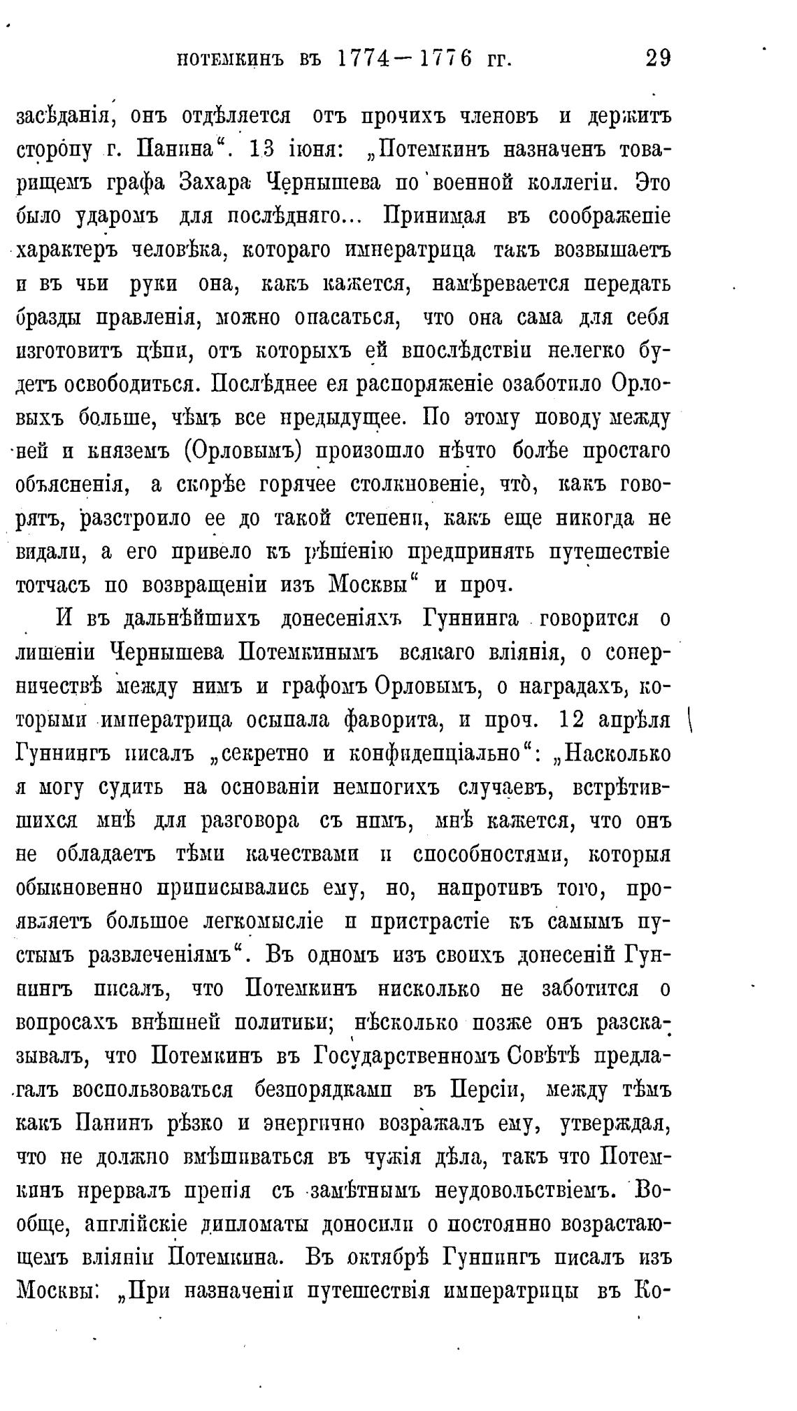 пингъ писалъ, что Потемкинъ нисколько не заботится о