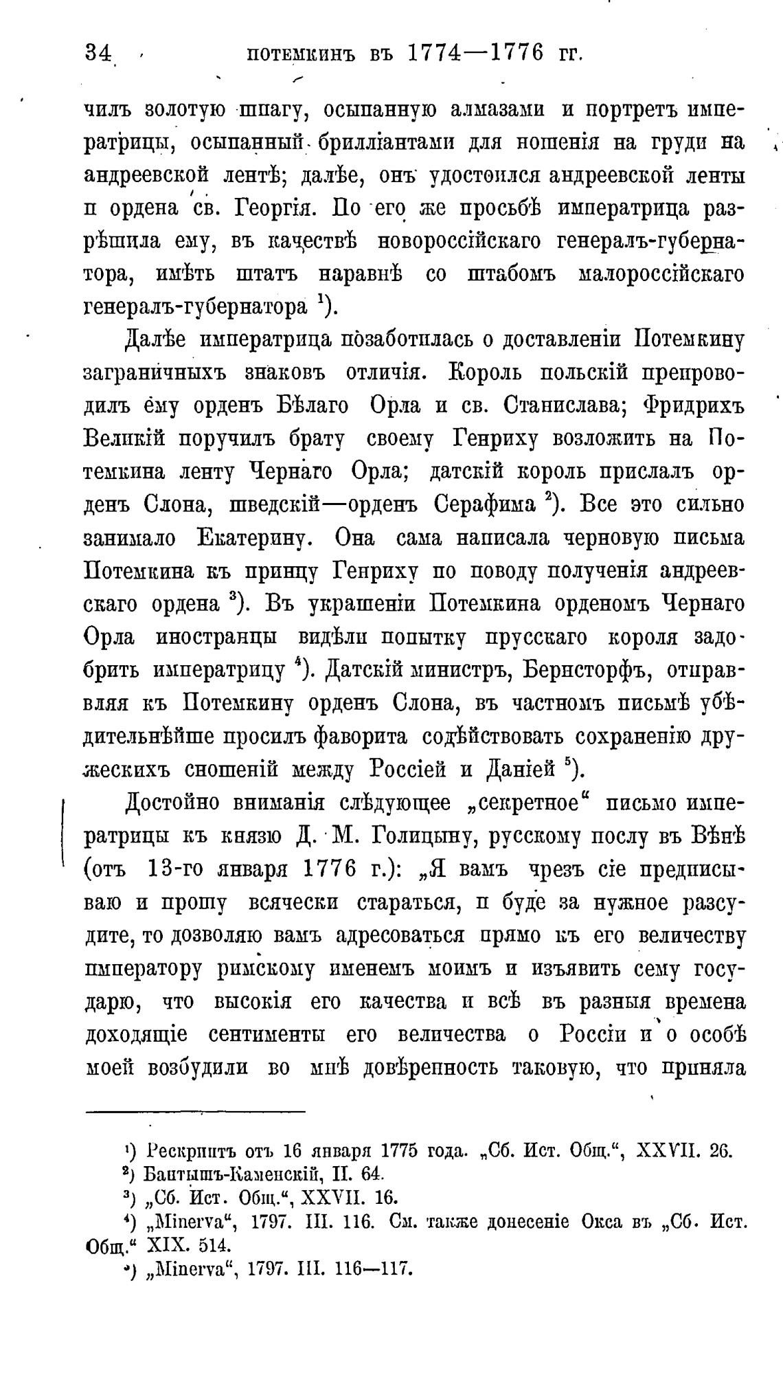 1) Рескрпитъ отъ 16 января 1775 года. „Сб. Ист. Общ.“ , XXVII. 26.