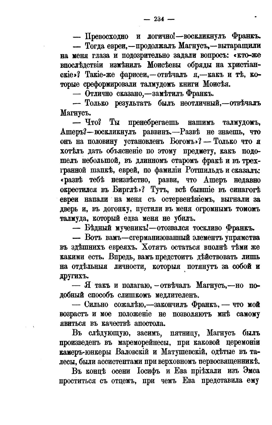 — Тогда евреи,—продолжалъ Магнусъ,—вытаращили